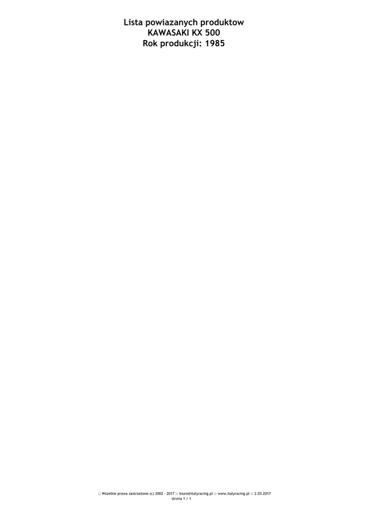 Lista powiazanych produktow KAWASAKI KX 500 Rok produkcji: 1985 :: Wszelkie prawa zastrzeżone (c) 2002 - 2017 :: [email protected] :: www.italyracing.pl :: 2.03.2017 strona 1 / 1