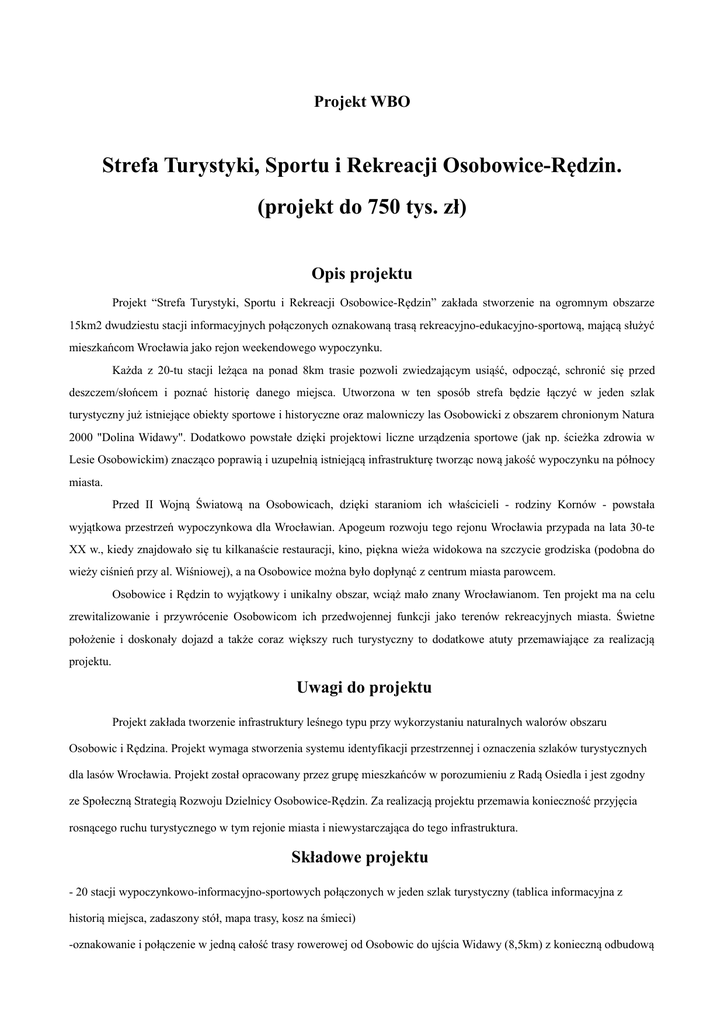 ze Społeczną Strategią Rozwoju Dzielnicy Osobowice-Rędzin. Za realizacją projektu przemawia konieczność przyjęcia