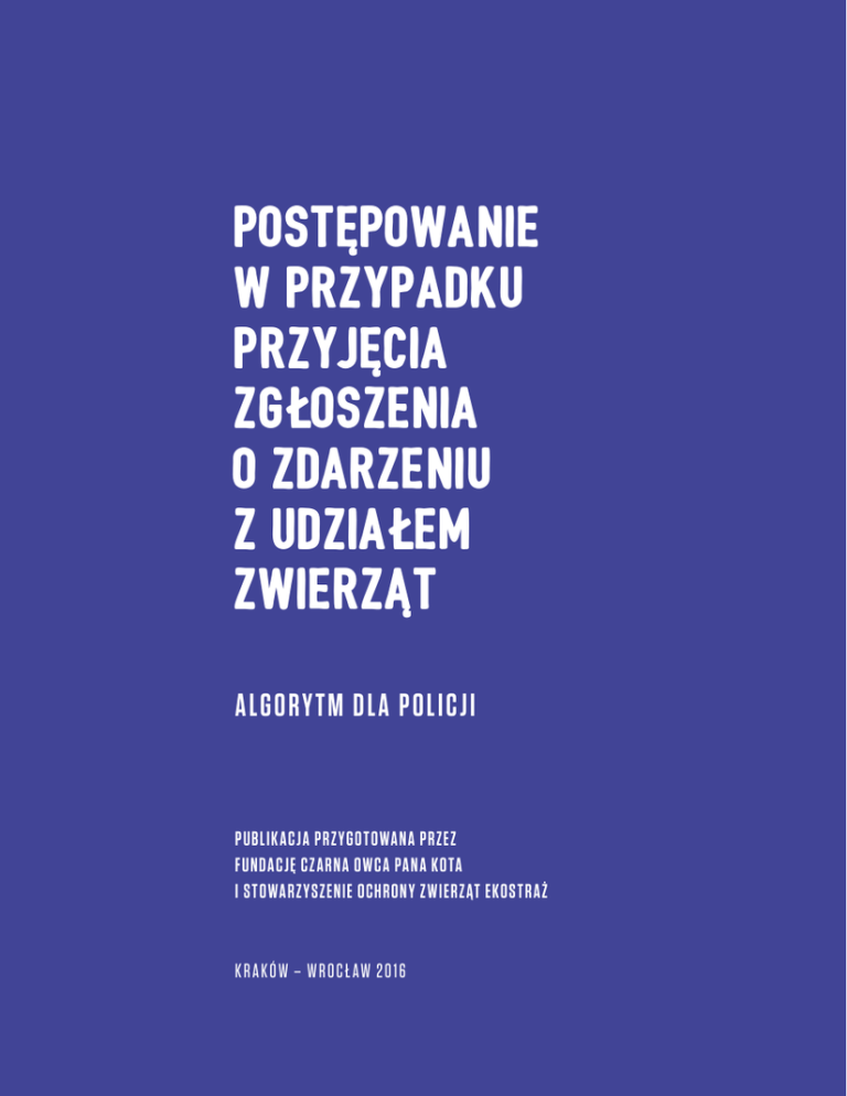 POSTĘPOWANIE W PRZYPADKU PRZYJĘCIA ZGŁOSZENIA O ZDARZENIU Z UDZIAŁEM ZWIERZĄT ALGORYTM DLA POLICJI PUBLIKACJA PRZYGOTOWANA PRZEZ FUNDACJĘ CZARNA OWCA PANA KOTA I STOWARZYSZENIE OCHRONY ZWIERZĄT EKOSTRAŻ K R A K Ó W – W R O C Ł AW 2 0 16 Postępowanie w przypadku przyjęcia zgłoszenia o zdarzeniu z udziałem zwierząt. Algorytm dla policji Kraków – Wrocław 2016 ISBN: 978-83-936890-8-8 Wydawczyni: Fundacja Czarna Owca Pana Kota ul. Na Szaniec 23 lok. 36 31–559 Kraków www.czarnaowca.org [email protected] Pewne prawa zastrzeżone © 2016 Fundacja Czarna Owca Pana Kota Treść dostępna na licencji Creative Commons Attribution-ShareAlike 3.0 license, http://creativecommons.org/licenses/by-sa/3.0/ Autor tekstu: Dawid Karaś Projekt, skład i łamanie: Tomek Argasiński Treść publikacji wyraża poglądy autorów i niekoniecznie odzwierciedla stanowisko Fundacji czy grantodawcy Projekt „Niech mają prawa!” realizowany w ramach programu Obywatele dla demokracji, finansowanego z funduszu EOG. Publikacja nieodpłatna, nie może być sprzedawana. SPIS TREŚCI 1. Wprowadzenie 2. Algorytm postępowania w przypadku przyjęcia zgłoszenia o niehumanitarnym traktowaniu zwierząt (zasadnicze czynności) 7 9 3. Algorytm postępowania w przypadku przyjęcia zgłoszenia o potrąceniu zwierzęcia (zasadnicze czynności) 10 4. Współpraca z organizacjami pozarządowymi 11 1. WPROWADZENIE Ustawa z dnia 21 sierpnia 1997 roku o ochronie zwierząt (UOZ) określa ścigane z urzędu przestępstwa i wykroczenia przeciwko zwierzętom. Przestępstwami w typie podstawowym są: — — znęcanie się nad zwierzętami (art. 35 ust. 1a w zw. z art. 6 ust. 2 UOZ), polecające na zadawaniu lub świadomym dopuszczaniu do zadawania zwierzętom bólu i cierpień, w szczególności poprzez np. bicie zwierząt, transport zwierząt powodujący ich zbędne cierpienie i stres, utrzymywanie zwierząt w niewłaściwych warunkach bytowania, w stanie rażącego zaniedbania (np. w nieleczonej chorobie) lub niechlujstwa, porzucenie zwierzęcia. Zgodnie z orzecznictwem i doktryną przestępstwo to może zostać popełnione wyłącznie z winy umyślnej i wyłącznie w zamiarze bezpośrednim, przy czym sam zamiar należy odnosić do poszczególnych czynności sprawczych (np. utrzymywania w niewłaściwych warunkach bytowania), a nie do spowodowania u zwierząt bólu lub cierpień. — — nieuzasadnione lub niehumanitarne zabijanie zwierząt (art. 35 ust. 1 w zw. z art. 6 ust. 1 lub w zw. z art. 33 i 34 UOZ), polegają na uśmierceniu zwierząt z innych powodów niż określone w UOZ lub niezgodnie z zasadami wynikającymi z UOZ oraz przepisów wykonawczych do niej. Przestępstwo to może zostać popełnione wyłącznie z winy umyślnej, w zamiarze bezpośrednim lub ewentualnym. Oba przestępstwa mogą zostać popełnione w typie kwalifikowanym (art. 35 ust. 2 UOZ), tj. ze szczególnym okrucieństwem. Szczególne okrucieństwo (art. 4 pkt. 12 UOZ) charakteryzuje przedsiębranie przez sprawcę działań charakteryzujących się drastycznością form i metod, a zwłaszcza działanie w sposób wyszukany lub powolny, obliczony z premedytacją na zwiększenie rozmiaru cierpień i czasu ich trwania. 4 Podstawowe wykroczenia przeciwko zwierzętom określone w UOZ to (mogą one zostać popełnione umyślnie i nieumyślnie): — — Brak zapewnienia zwierzętom domowym pomieszczenia chroniącego przed warunkami atmosferycznymi, z dostępem do światła dziennego, umożliwiającego swobodną zmianę pozycji ciała, odpowiedniej karmy i stałego dostępu do wody (art. 37 w zw. z art. 9 ust. 1 UOZ). — — Trzymanie zwierząt domowych na uwięzi w sposób stały dłużej niż 12 godzin w ciągu doby lub powodujący u nich uszkodzenia ciała lub cierpienie oraz niezapewniający możliwości niezbędnego ruchu. Trzymanie zwierząt domowych na uwięzi krótszej niż 3 metry (art. 37 w zw. z art. 9 ust. 2 UOZ). — — Brak zapewnienia zwierzętom gospodarskim opieki i właściwych warunków bytowania (art. 37 w zw. z art. 12 ust. 1UOZ). — — Nieudzielenie stosownej pomocy zwierzęciu przez prowadzącego pojazd mechaniczny, który potrącił zwierzę lub niezawiadomienie przez niego o tym właściwych służb (art. 37 w zw. z art. 25 UOZ). — — Naruszenie przez przewoźnika zasad transportu zwierząt (brak dokumentów, brak licencji, brak świadectw zatwierdzenia środka transportu, niewłaściwe warunki transportu; art. 37b UOZ). Organizacje społeczne, których statutowym celem działania jest ochrona zwierząt, mogą wykonywać prawa pokrzywdzonego w sprawach o przestępstwa oraz wykroczenia (tylko z art. 37) określone w Ustawie o ochronie zwierząt (podstawa prawna: art. 39 UOZ). Organizacjom takim w postępowaniach karych przysługują wszystkie prawa stron. Dodatkowo takie organizacje mają wynikające z art. 7 ust. 3 UOZ uprawnienie do czasowego odebrania właścicielowi (opiekunowi) zwierzęcia bez uprzedniej decyzji administracyjnej organu gminy w przypadkach niecierpiących zwłok, gdy dalsze pozostawienie pod jego opieką zwierzęcia zagraża zdrowiu lub życiu zwierzęcia. Tożsame uprawnienie ma funkcjonariusz policji. W przypadku organizacji społecznych, decyzję taką może podjąć upoważniony przez organizację przedstawiciel na podstawie dokonanej przez siebie oceny sytuacji. Skutki takiej decyzji obciążają organizację społeczną – ma ona obowiązek niezwłocznego zawiadomienia o fakcie czasowego odbioru zwierzęcia właściwego miejscowo wójta (burmistrza, prezydenta miasta) w celu wydania przez ten organ decyzji administracyjnej w tym przedmiocie. 5 2. 1 2 3 6 ALGORYTM POSTĘPOWANIA W PRZYPADKU PRZYJĘCIA ZGŁOSZENIA O NIEHUMANITARNYM TRAKTOWANIU ZWIERZĄT Wstępna kwalifikacja zdarzenia jako przestępstwa lub wykroczenia z Ustawy o ochronie zwierząt. Podjęcie czynności stosownie do formy zgłoszenia i okoliczności będących jego przedmiotem: a. przesłuchanie zgłaszającego w charakterz