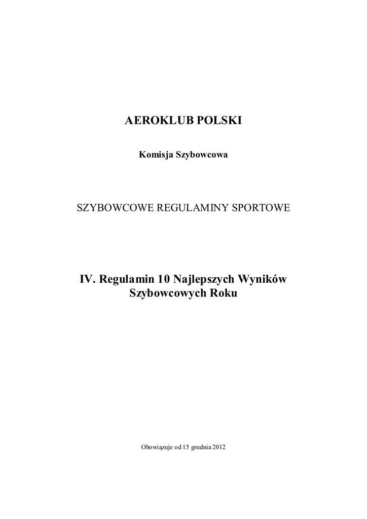 AEROKLUB POLSKI IV. Regulamin 10 Najlepszych Wyników