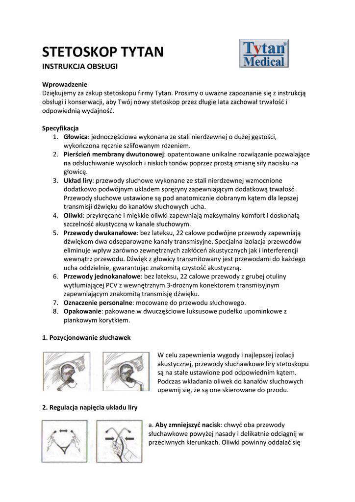 Instrukcja obslugi stetoskopow Tytan