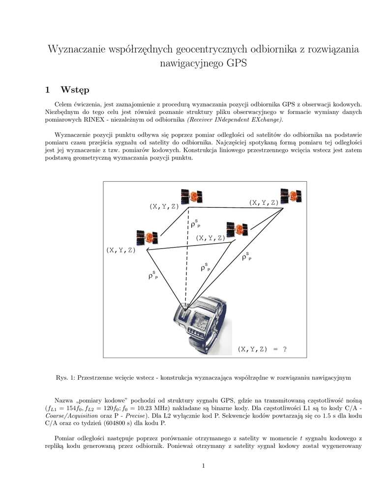 Wyznaczanie współrzędnych geocentrycznych odbiornika