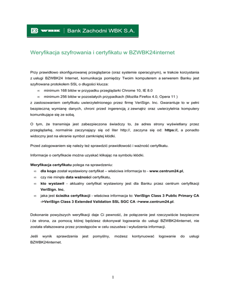 Weryfikacja szyfrowania i certyfikatu w BZWBK24internet