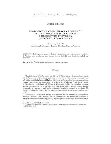 EKOLOGICZNA ORGANIZACJA POPULACJI NEOTTIA NIDUS