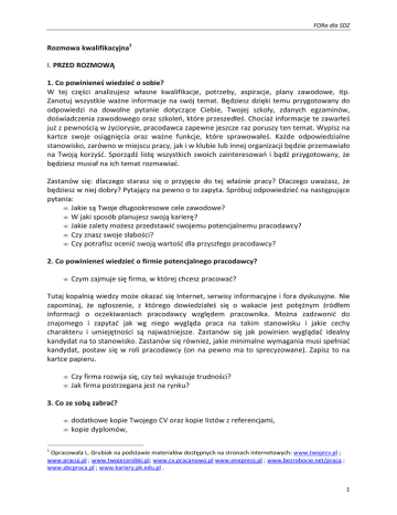 Rozmowa kwalifikacyjna I. PRZED ROZMOWĄ 1. Co powinieneś wiedzieć