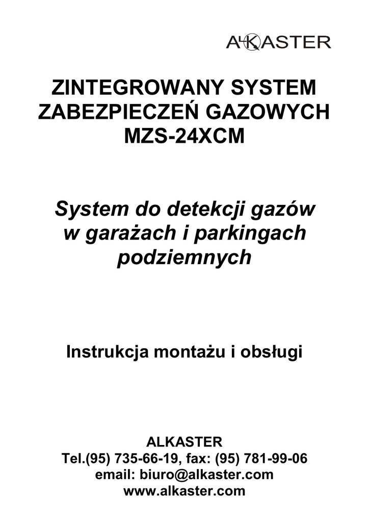 ZINTEGROWANY SYSTEM ZABEZPIECZEŃ GAZOWYCH MZS-24XCM System do detekcji gazów w garażach i parkingach podziemnych Instrukcja montażu i obsługi ALKASTER Tel.(95) 735-66-19, fax: (95) 781-99-06 email: [email protected] www.alkaster.com System do detekcji gazów w garażach i parkingach podziemnych oparty na Modułach Zasilająco-Sterujących MZS24XCM jest uproszczoną wersją Zintegrowanego Systemu Zabezpieczeń Gazowych (ZSZG). Wbudowany układ mikroprocesorowy nadzoruje pracę wszystkich urządzeń podłączonych do linii komunikacyjnej „–D+” oraz odpowiednio wysterowuje wyjścia przekaźnikowe. Do MZS24XCM podłączane mogą być następujące urządzenia: detektory gazów LPG DEP-08G i tlenku węgla DEC-08G, tablice sygnalizacyjne TAB-08G oraz sygnalizatory optyczno-akustyczne SOA-08G. Stan pracy urządzeń oraz stany alarmowe wizualizowane są na płycie czołowej (rys.1). Rys.1 MZS-24XCM ALARM 3 KOMUNIKACJA MODUŁÓW MZS-24XCM MODUŁ ZASILAJĄCO-STERUJĄCY Dane techniczne: Typ styków Obciążenie indukcyjne Obciążenie rezystancyjne Pobór mocy Napięcie zasilania Bezpieczniki Wilgotność względna Temperatura pracy System zasilania i komunikacji Obudowa - stopień ochrony Wymiary (dł x sz x gł) mm A1, A2, A3/AWARIA -przełączne 2A / 250VAC 8A 30VDC / 250VAC 15W (max) 230 VAC 2 x 315mA WTAT 0 - 90 % o o -10 C do +40 C “-D+” IP 55 176 x 125 x 56 2 ZASADA DZIAŁANIA: Moduł Zasilająco-Sterujący MZS24XCM zapewnia zasilanie dla wszystkich elementów składowych ZSZG jednocześnie kontrolując wszystkie funkcje podłączonych elementów. Zapisuje w trwałej pamięci (EEPROM) wszystkie zalogowane urządzenia. W przypadku ich niekontrolowanego wylogowania (uszkodzenie, sabotaż) informuje użytkownika sygnalizacją optyczno-dźwiękową. W czasie normalnej pracy cyklicznie komunikuje się z każdym z nich odbierając z detektorów informacje o przekroczonych progach alarmowych oraz stanie magistrali „-D+”. Wysyła również sygnały sterujące do urządzeń wykonawczych takich jak tablice informacyjne oraz sygnalizatory optyczno-akustyczne. Stan normalnej pracy sygnalizowany jest ciągłym świeceniem zielonej diody LED oznaczonej napisem ZASILANIE/TEST. Kolejna dioda żółtego koloru zapala się w stanach awarii elementów składowych, sabotażu lub zwarcia (przeciążenia) na linii zasilającej „-D+”. Dwie kolejne diody, w kolorze czerwonym, sygnalizują przekroczenie stanów alarmowych – alarm1, alarm 2, alarm 3. Wszystkie te stany, poza trybem normalnej pracy, mogą być sygnalizowane wewnętrznym sygnalizatorem dźwiękowym. Użytkownik poprzez odpowiednie ustawienie zworki może tę funkcję wyłączyć. MZS24XCM został wyposażony w dodatkowe funkcje kontrolnodiagnostyczne. Poprzez naciśnięcie przycisku TEST/RESET przez około 1 sekundę, co potwierdzone jest krótkim impulsem dźwiękowym, mikroprocesor rozpoczyna testowanie podłączonych do systemu urządzeń sprawdzając wszystkie możliwe adresy, zaznaczając każdy adres krótkim impulsem zielonej diody LED. W przypadku zlokalizowania pod danym adresem urządzenia impuls świetlny zostaje wydłużony do 1 sekundy. Stan wylogowania urządzenia wcześnie zalogowanego sygnalizowany jest dodatkowo jednosekundowym impulsem dźwiękowym. Ułatwia to sprawdzenie podłączonych do systemu elementów jak również ustalenie elementu, który uległ awarii lub działaniu sabotażowemu. Naciśnięcie przycisku TEST/RESET przez czas dłuższy niż 5 sekund uruchamia funkcję kasowania pamięci i umożliwia powtórne 3 zalogowanie podłączonych elementów (np. w innej konfiguracji). Stan kasowania (RESETU) sygnalizowany jest krótkimi impulsami świetlnymi i dźwiękowymi powtarzanymi dla wszystkich adresów. Stany alarmowe oraz stan awarii powodują zmianę stanów odpowiednio oznaczonych przekaźników. Służą one sterowania dowolnymi odbiornikami w obwodach zewnętrznych (np. wentylacja, dodatkowa sygnalizacja, łączenie z innymi systemami kontroli) – nie przekraczając dopuszczalnych parametrów obwodu. Stan przekaźnika oznaczonego napisem AWARIA jest stanem aktywnym – oznacza to, że również w przypadku zaniku napięcia zasilania modułu MZS24XCM przekaźnik rozewrze swoje styki. W przypadku zwarcia (przeciążenia) na linii „-D+” układ wymaga użycia RESETU w celu przywrócenia zasilania tej linii, po uprzednim usunięciu przyczyny zwarcia. Podłączony do systemu sygnalizator SOA-08G uruchamia sygnał optyczno-akustyczny wyłącznie dla ALARMU 2 i 3. Informuje ponadto o stanie awarii uruchamiając tylko sygnał optyczny. Tablice informacyjne TAB-08G uruchamiają się w przypadku przekroczenia poziomu ALARMU 2. Poniżej przedstawiony jest rozkład głównych elementów MZS24XCM MZS 6 SYGN.AKUST. ZASILANIE 230VAC 4 D9 M D8 RE1 RE2 RE3 _ WG.INSTRUKCJI 2x250VAC/WTAT 5 D7 1SEK.-TEST 5SEK.-RESET 3 L PE N 7 FS2 _ 1 8 FS1 ON M OFF 2 C NC NO C NC NO C NC NO ALARM1 ALARM2 AWARIA _ D + _ D + _ D + NIE PODAWAĆ NAPIEĆ NA ZACISKI (-D+) ŁĄCZYĆ Z URZĄDZENIAMI: DET, TAB, SOA, SEPARACJA OBWODÓW 1000VAC OBCIAŻENIE INDUKC. 3A/250VAC REZYSTANC. 8A30VDC/250VAC 1. przekaźniki przełączne podające informację o alarmie 1, 2, 3 stopnia lub o awarii systemu, 4 2. konektory przyłączeniowe ALARM1, ALARM2, ALARM3/AWARIA, 3. konektory przyłączeniowe linii komunikacyjnej „-D+”, 4. konektory do łączenia pomiędzy modułami MZS24XCM, 5. przycisk testu i resetu, 6. przełącznik typu Jumper do załączenia lub wyłączenia syreny wewnętrznej, 7. konektory do podłączenia napięcia zasilania 230V AC, 8. bezpieczniki Podobnie jak w ZSZG możliwe jest łączenie szeregowe detektorów (jeden od drugiego) oraz tworzenie rozgałęzień Przykład nr 1 DEC-08G DEC-08G SOA-08G MZS24XCM DEP-08G DEC-08G Przykład nr 2 DEC-08G SOA-08G MZS24XCM DEP-08G DEC-08G 5 DEC-08G TAB-08G TAB-08G Zwiększenie ilości detektorów lub innych urządzeń w jednej strefie możliwe jest przez łączenie modułów jeden od d