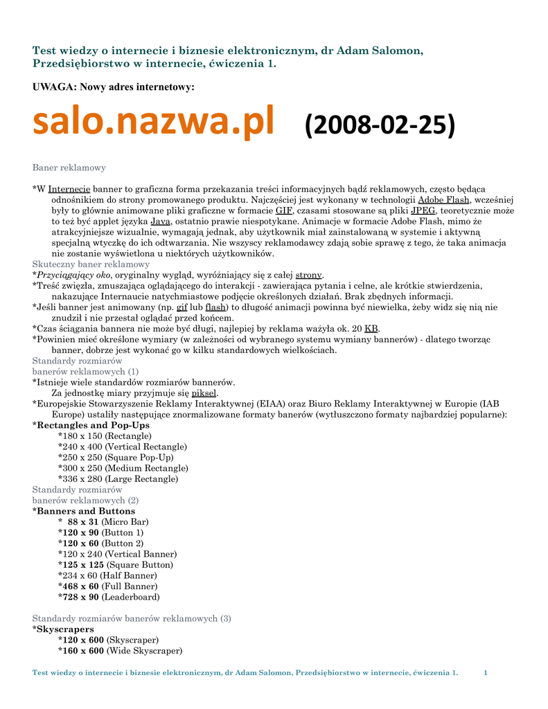 Test wiedzy o internecie i biznesie elektronicznym, dr Adam Salomon,