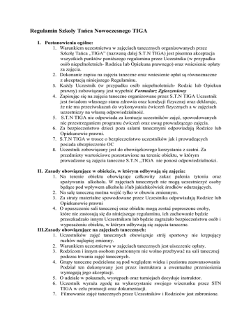 Regulamin Szkoły Tańca Nowoczesnego TIGA