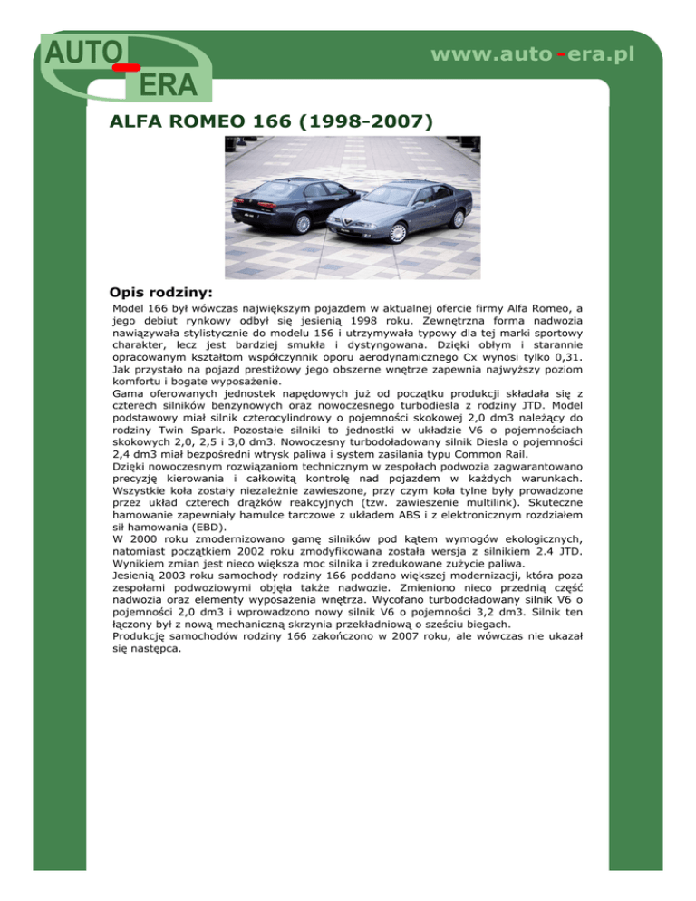 Opis rodziny: ALFA ROMEO 166. - AUTO-ERA