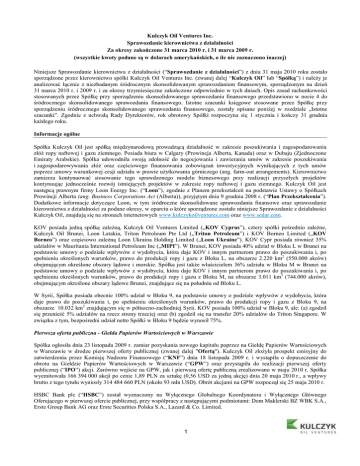 Niniejsze Sprawozdanie kierownictwa z działalności (“Sprawozdanie z działalności”) z dnia 31 maja 2010 roku zostało