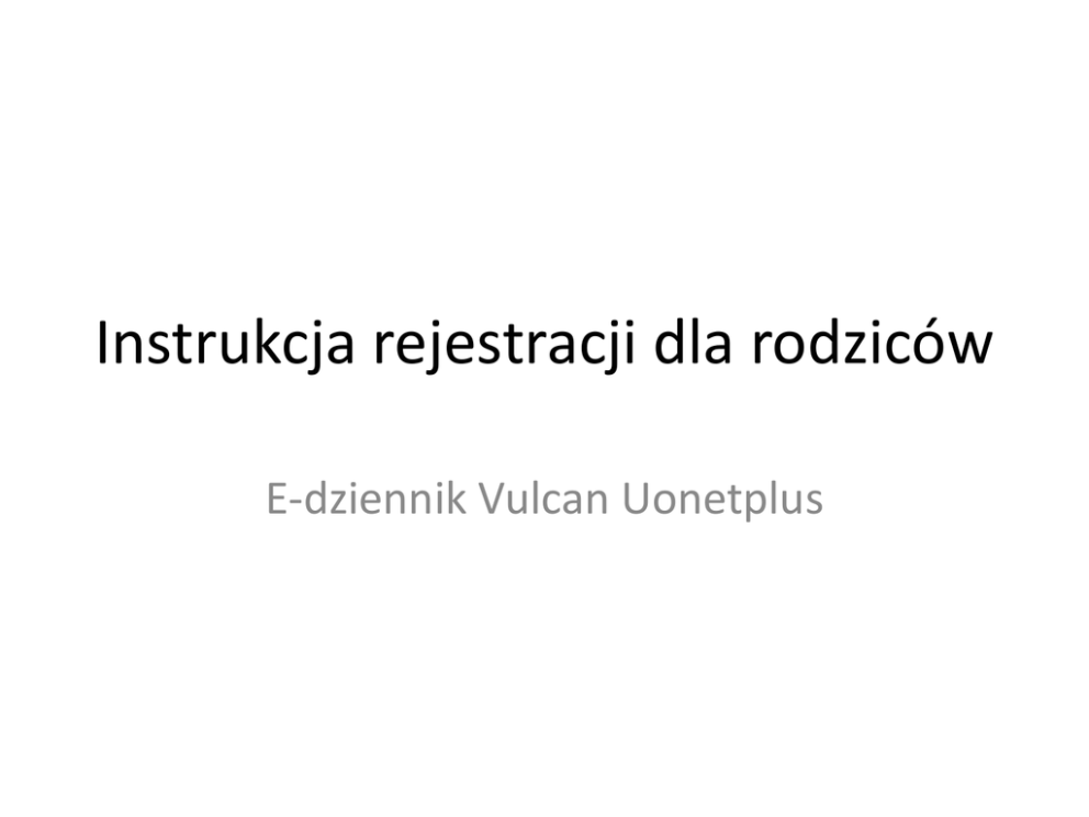 Instrukcja rejestracji dla rodziców E-dziennik Vulcan Uonetplus Podstawą uzyskani dostępu do e-dziennika jest podanie Państwa adresu email do wychowawcy klasy. Państwa adres email służy wyłącznie jako login do e-dziennika i nie będzie on nigdzie widoczny ani udostępniany dalej. Po dopisaniu przez wychowawcę adresu e-mail do kartoteki Państwa dziecka, należy zarejestrować się na stronie. http:\\uonetplus.vulcan.net.pl\bydgoszcz W związku z częstymi problemami z logowaniem zaleca się nie wyszukiwanie adresu w google tylko poprzez link umieszczony na stronie szkoły. Po wejściu n stronę, za pierwszym razem należy kliknąć przywracanie dostępu. Uczniowie których rodzice uczą lub mają dzieci w innych szkołach korzystających z e-dziennika firmy Vulcan nie muszą przywracać dostępu. Po dopisaniu adresu email automatycznie uzyskają dostęp do e-dziennika w szkole. 1. Należy przepisać cyfry lub słowa znajdujące się w okienku. W przypadku kłopotów z odczytaniem Można zmienić obrazek klikając wskazany przycisk. Następnie należy wpisać adres email I kliknąć wyślij wiadomość Następnie proszę odebrać pocztę email. Nie ma znaczenie czy robimy to poprzez stronę www lub klienta poczty. Raczej nie zalecane odbieranie jest na telefonie komórkowym, ze względu na trudnione następne kroki. W przypadku odbieranie przez stronę internetową bardzo często możliwe jest że wiadomość rejestracyjna znajdzie się nie bez pośrednio w zakładce szkynka odbiorcza tylko w zakładce inne. Klikamy w link potwierdzający nasz dres email. Ponownie przepisujemy zawartość Okienka. A następnie wpisujemy 2 razy hasło Hasło powinno: - Składać się z minimum 8 znaków - Zawierać przynajmniej jedną duża i małą literę - Zwierać przynajmniej jedną cyfrę Np. Gdanska1 Po wpisaniu hasła klikam Ustaw nowe hasło W tym momencie powinni Państwo uzyskać dostęp do e-dziennika. Wchodzimy ponownie na stronę e-dziennika. www.uonetplus.vulcan.net.pl\bydgoszcz Oczywiście zalecane wejście przez stronę szkoły w celu uniknięci pomyłek. Wpisujemy nasz login – którym jest adres email oraz nasze nowe hasło. Uzyskanie ekranu zbliżonego do tego znajdującego się po lewej stronie oznacza że wykonaliśmy rejestracje prawidłowo i możemy rozpocząć korzystanie z e-dziennik Ten komunikat oznacza że wystąpił jakiś błąd: - Wychowawca nie wpisał jeszcze Państwa adresu email - Wpisał ale wystąpiła literówka w adresie - Są Państwo na złej stronie np. \powiatoswiecim Proszę ponownie sprawdzić wpisany adres strony, a w przypadku jego poprawności proszę o kontakt z wychowawcą klasy Dziękujemy. Mamy nadzieję że prezentacja był Państwu pomocna.