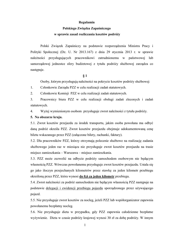Regulamin PZZ w sprawie zasad rozliczania kosztow podrozy