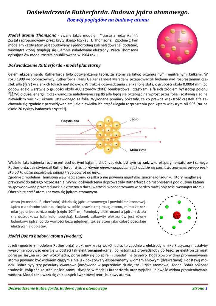 NT. Doświadczenie Rutherforda. Budowa jądra atomowego.