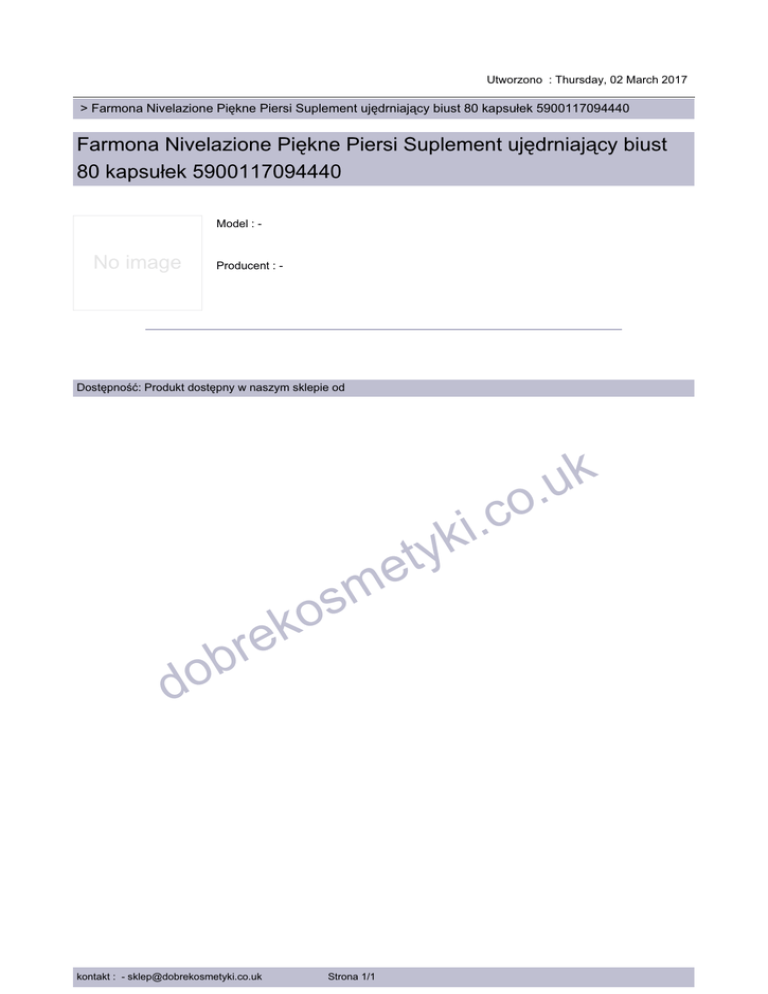 Utworzono : Thursday, 02 March 2017 > Farmona Nivelazione Piękne Piersi Suplement ujędrniający biust 80 kapsułek 5900117094440 Farmona Nivelazione Piękne Piersi Suplement ujędrniający biust 80 kapsułek 5900117094440 Model : - No image Producent : - Dostępność: Produkt dostępny w naszym sklepie od y t e k u . o c . i k m s o k e br do kontakt : - [email protected] Strona 1/1