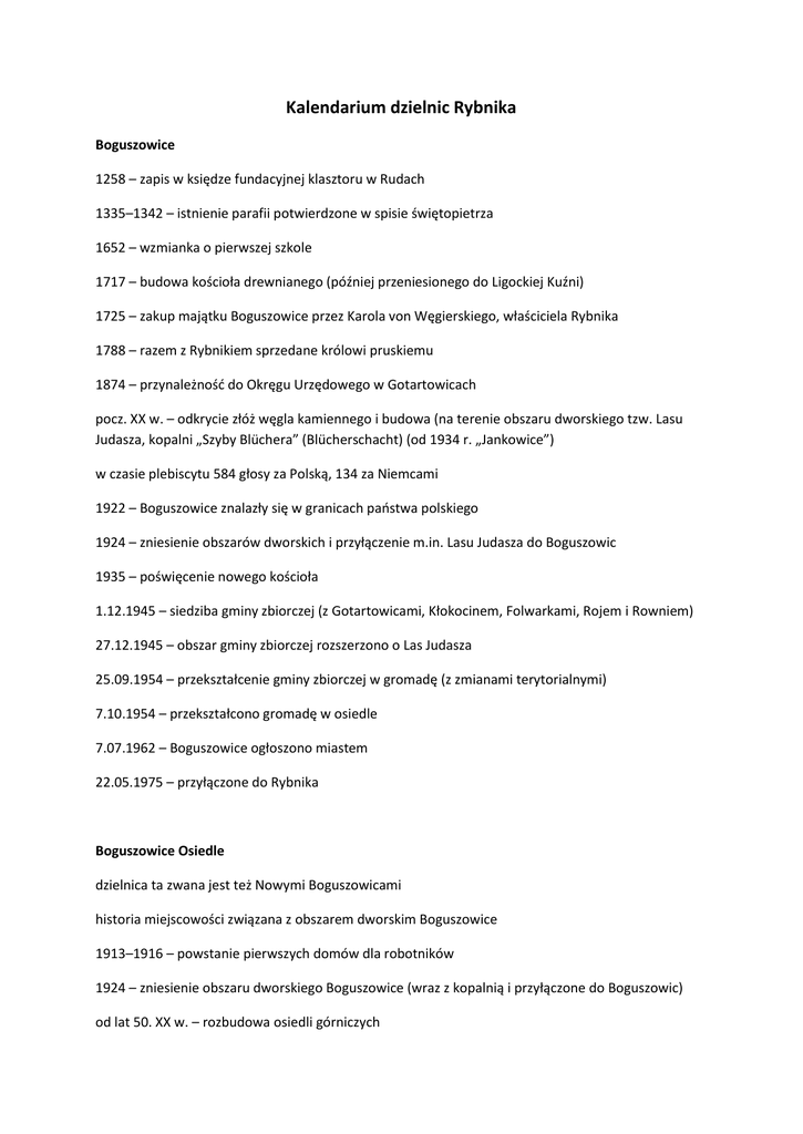 Kalendarium dzielnic Rybnika