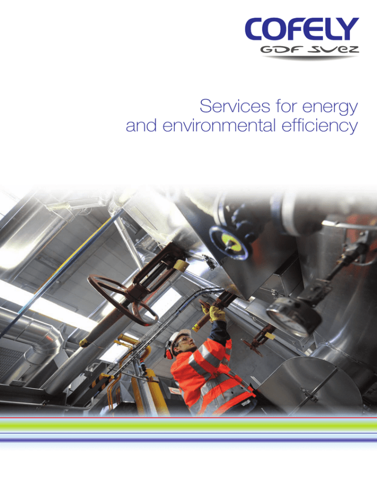 Services for energy and environmental efficiency COFELY, experts in energy and environmental efficiency European leader in energy and environmental efficiency, COFELY designs and implements solutions to help businesses and public authorities make better use of energy, whilst reducing environmental impacts. COFELY makes long-term commitments to its Customers, through services or installations, and contractually guarantees the performance of their facilities. With more than 35,000 employees in fifteen European countries, COFELY pursues its development while promoting close working relationships with its Customers. COFELY’s turnover will represent around 8 billion euros in 2009. COFELY is part of GDF SUEZ Energy Services, one of the six business lines of GDF SUEZ, employing 80,000 people with a turnover of 14 billion euros in 2008. GDF SUEZ develops its businesses (energy, energy services and environment) around a responsible growth model to take up todays greatest challenges: responding to energy needs, fighting against climate change and maximising the use of resources. © Atelier Roland Castro COFELY helps its Customers optimise their energy mix by using clean, local, sustainable and efficient energy, including renewable energies. Our Expertise In the UK, COFELY offers a comprehensive range of facilities services and energy solutions tailored to the requirements of our Customers: Facilities Services We deliver harmonised facilities services and energy solutions that support our Customers’ activities, drive cost from their businesses and add value to their operations. Our priority is to understand each Customer’s requirement and build the right solution for single and multisite portfolios. We provide a blend of service elements that integrate seamlessly with the Customer’s core business as well as meeting all legislative, operational and sustainability imperatives, within clearly defined service agreements. • Technical Facilities Services (Operations & Maintenance) • Flexible Account Management & Reporting • Performance Guarantees Energy & Sustainability Services: COFELY manages all aspects of Customers’ energy and sustainability needs from procurement to controlling consumption, ensuring efficiency through improved levels of control, maintenance and operations. We guarantee internal working environments and, where we have identified savings, contractually guarantee them with any consumption over target at our cost. • Energy Auditing, Procurement & Supply, • Sustainable Solutions (e.g. CHP, & renewable technologies such as biomass) • Energy & Supply Management Project Services We have a highly skilled and safety conscious team offering a full spectrum of major project management, installation and refurbishment services from design to commissioning and after sales support: COFELY in the UNITED KINGDOM 2,700 13,000 employees million m2 Customer sites throughout UK & Ireland managed space £300 23 million turnover 12.4 regional centres 12 PFI / PPP portfolios • Building Services Installation & Office Refurbishment • Project Management & Turn-key Project Delivery • Design, Build, Finance & Operate (DBFO) Integrated Facilities Solutions COFELY can provide an integrated total building services solution, incorporating all key components including facilities, energy and project services. The risk is transferred from the Customer to ourselves, with the solution aligned to meet immediate and future business needs and budgeting requirements: • Total Technical and Building Services Solutions • Facilities Management • Long-term Partnerships (including CEM, PFI, PPP & LIFT) Central & Local Government Commercial Property Manufacturing & Industry Provider of a full range of facilities & energy management services to local and central Government offices, military bases, hospitals and healthcare centres, prisons, educational establishments and court buildings. COFELY also operates a number of long-term PFI, PPP and NHS LIFT contracts, district heating & cooling networks and has provided renewable energy solutions to a number of Customers. Service provision tailored to individual needs and to meet all legislative, operational and sustainability challenges. COFELY works with Customers in retail, property management, leisure, financial and legal sectors and serves many blue chip organisations. We also have specialist teams to provide solutions for critical engineering systems, airports and retail Customers. COFELY assists industrial companies to improve installation performance and reduce environmental emissions. Through our specialist industrial division, we are a provider of optimised energy management solutions to a wide range of manufacturing and industrial Customers across the UK, from automotive & defence industries, to household goods and food & beverage manufacturers. COFELY Limited Stuart House Coronation Road High Wycombe Buckinghamshire HP12 3TA United Kingdom Tel.: + 44 1494 472902 www.cofely-gdfsuez.com Design and production: Les Éditions Stratégiques Specialist Facilities & Energy Solutions for Every Customer Sector