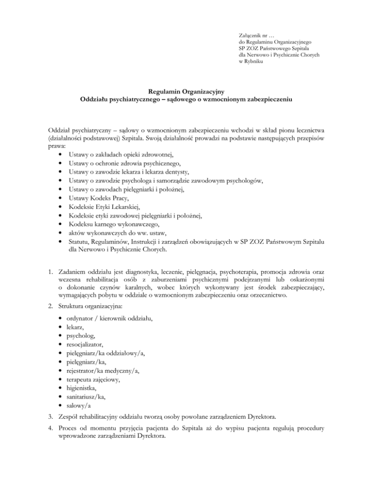 Regulamin Organizacyjny Oddziału psychiatrycznego