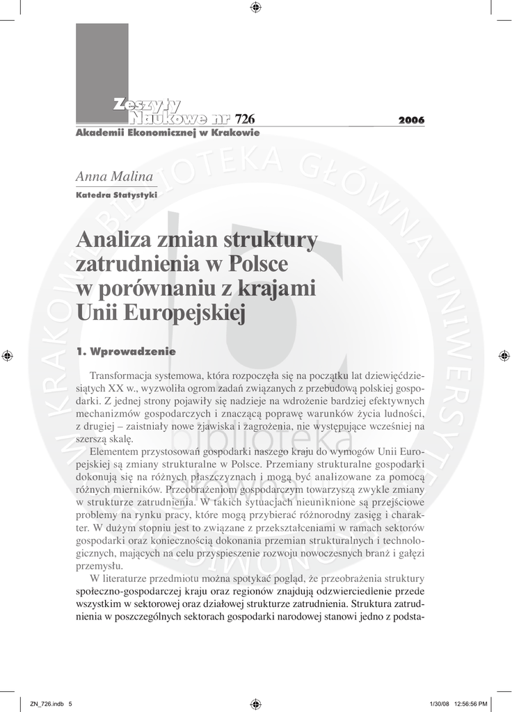 i ocena zmian strukturalnych w sferze zatrudnienia w Polsce po 1990 r. w porównaniu z krajami Unii Europejskiej.