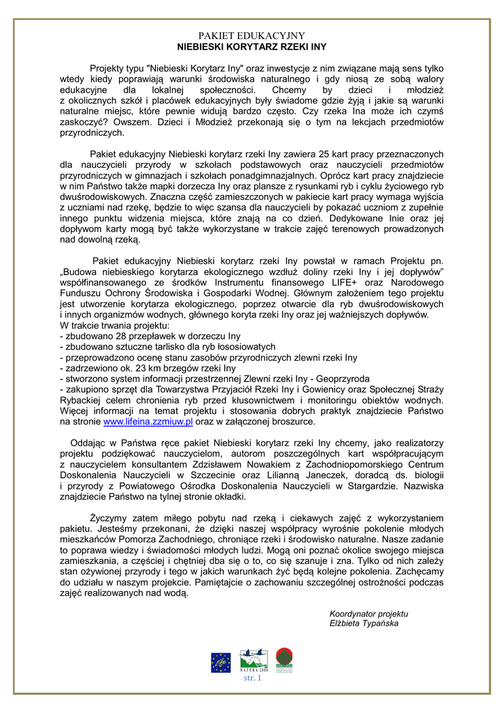 Pakiet edukacyjny „Niebieski korytarz rzeki Iny”
