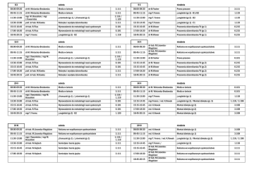 8X sobota 9X niedziela 08:00-09:30 dr M. Winiarska-Brodowska Media w świecie 3.111 08:00-09:30 dr B.Fischer Prawo prasowe 3.111 09:45-11:15 Media w świecie mgr T.Ferenc j.angielski (gr.3) - B1/B2 1.119 j.niemiecki (gr.1) / j.francuski (gr.1) 3.111 1.118 / 1.120 3.111 09:45-11:15 11:30-13:00 mgr T. Ferenc j.angielski (gr.2) - B2 1.119 13:30-15:00 dr M. Winiarska-Brodowska mgr M. Brzeziński / mgr J.Towarnicka prof. dr hab. M.Kawka 13:15-14:45 mgr T.Ferenc j.angielski (gr.1) - C1 1.119 15:15-16:45 dr hab. R.Filas Wprowadzenie do metodologii nauk społecznych 0.101 15:15-16:45 dr M.Wawer Pracownia dziennikarska TV (gr.1) 0.215 17:00-18:30 dr hab. R.Filas Wprowadzenie do metodologii nauk społecznych 0.101 17:00-18:30 dr M.Wawer Pracownia dziennikarska TV (gr.1) 0.215 18:45-20:15 mgr T. Ferenc j.angielski (gr.2) - B2 1.118 18:45-20:15 dr M.Wawer Pracownia dziennikarska TV (gr.1) 0.215 11:30-13:00 15 X Retoryka i erystyka dziennikarska sobota 08:00-09:30 dr M. Winiarska-Brodowska Media w świecie 09:45-11:15 dr M. Winiarska-Brodowska Media w świecie 13:30-15:00 mgr J.Towarnicka / mgr M . Brzeziński dr hab. R.Filas 15:15-16:45 17:00-18:30 18:45-20:15 11:30-13:00 16 X 3.111 08:00-09:30 3.111 09:45-11:15 niedziela dr hab. M.LisowskaMagdziarz dr hab. M.LisowskaMagdziarz Reklama we współczesnym społeczeństwie 3.111 Reklama we współczesnym społeczeństwie 3.111 Wprowadzenie do metodologii nauk społecznych 1.118 / 1.119 0.101 dr hab. R.Filas Wprowadzenie do metodologii nauk społecznych 0.101 15:15-16:45 dr M.Wawer Pracownia dziennikarska TV (gr.2) 0.215 prof. dr hab. M.Kawka Retoryka i erystyka dziennikarska 3.111 17:00-18:30 dr M.Wawer Pracownia dziennikarska TV (gr.2) 0.215 prof. dr hab. M.Kawka Retoryka i erystyka dziennikarska 3.111 18:45-20:15 dr M.Wawer Pracownia dziennikarska TV (gr.2) 0.215 29 X j.francuski (gr.1) / j.niemiecki (gr.1) sobota 11:30-13:00 dr B.Fischer Prawo prasowe 0.101 13:15-14:45 dr M. Wawer Pracownia dziennikarska TV (gr.2) 0.215 30 X niedziela 08:00-09:30 dr M. Winiarska-Brodowska Media w świecie 3.111 08:00-09:30 dr M. Winiarska-Brodowska Media w świecie 0.101 09:45-11:15 Media w świecie dr M. Winiarska-Brodowska Media w świecie 0.101 j.francuski (gr.1) / j.niemiecki (gr.1) 11:30-13:00 mgr T.Ferenc j.angielski (gr.1) 1.118 Wprowadzenie do metodologii nauk społecznych 3.111 1.118 / 1.119 0.101 09:45-11:15 13:30-15:00 dr M. Winiarska-Brodowska mgr J.Towarnicka / mgr M. Brzeziński dr hab. R.Filas 13:15-14:45 mgr Ferenc / red. K.Nowak j.angielski (gr.2) / Montaż dźwięku (gr. 3) 15:15-16:45 dr hab. R.Filas Wprowadzenie do metodologii nauk społecznych 0.101 15:15-16:45 red. K.Nowak Montaż dźwięku (gr.3) 3.108 17:00-18:30 dr hab. R.Filas Wprowadzenie do metodologii nauk społecznych 0.101 17:00-18:30 red. K.Nowak Montaż dźwięku (gr.2) 3.108 18:45-20:15 mgr T. Ferenc j.angielski (gr.2) - B2 1.120 18:45-20:15 red. K.Nowak Montaż dźwięku (gr.2) 3.108 11:30-13:00 19 XI sobota 20 XI 1.118 / 3.108 niedziela 08:00-09:30 dr hab. M.Lisowska-Magdziarz Reklama we współczesnym społeczeństwie 3.111 08:00-09:30 red. K.Nowak Montaż dźwięku (gr.1) 3.108 09:45-11:15 Reklama we współczesnym społeczeństwie red. K.Nowak Montaż dźwięku (gr.1) 3.108 j.francuski (gr.1) / j.niemiecki (gr.1) 11:30-13:00 mgr T. Ferenc / red. K.Nowak j.angielski (gr.1) / Montaż dźwięku (gr.3) Semiotyka i teoria języka 3.111 1.118 / 1.119 3.111 09:45-11:15 13:30-15:00 dr hab. M.Lisowska-Magdziarz mgr J.Towarnicka / mgr M. Brzeziński dr hab. W.Kajtoch 13:15-14:45 j.angielski (gr.3) 1.118 15:15-16:45 dr hab. W.Kajtoch Semiotyka i teoria języka 3.111 15:15-16:45 Reklama we współczesnym społeczeństwie 3.111 17:00-18:30 dr hab. W.Kajtoch Semiotyka i teoria języka 3.111 17:00-18:30 mgr T.Ferenc / dr hab. M.LisowskaMagdziarz dr hab. M.LisowskaMagdziarz dr hab. M.LisowskaMagdziarz Reklama we współczesnym społeczeństwie 3.111 Reklama we współczesnym społeczeństwie 3.111 11:30-13:00 18:45-20:15 1.118 / 3.108 26 XI sobota 27 XI 08:00-09:30 niedziela 08:00-09:30 dr hab. A.Kaliszewski Główne nurty w literaturze św. i pol. XX i XXI w. 3.111 09:45-11:15 mgr T.Ferenc j.angielski (gr.1) / j.angielski (gr.3) 1.118 11:30-13:00 mgr T. Ferenc / red. K.Nowak j.angielski (gr.2) / Montaż dźwięku (gr.3) j.angielski (gr.3) - B2 3.111 1.118 / 1.119 1.120 13:15-14:45 red. K.Nowak Montaż dźwięku (gr.3) 3.108 j.angielski (gr.1) - B2 1.120 15:15-16:45 red. K.Nowak Montaż dźwięku (gr.2) 3.108 red. K.Nowak Montaż dźwięku (gr.1) 3.108 17:00-18:30 red. K.Nowak Montaż dźwięku (gr.2) 3.108 red. K.Nowak Montaż dźwięku (gr.1) 3.108 08:00-09:30 prof. dr hab. M.Kawka Retoryka i erystyka dziennikarska 3.111 08:00-09:30 dr W.Świerczyńska-Głownia Marketing i zarządzanie 0.101 09:45-11:15 Retoryka i erystyka dziennikarska dr W.Świerczyńska-Głownia Marketing i zarządzanie 0.101 j.francuski (gr.1) / j.niemiecki (gr.1) 11:30-13:00 mgr T. Ferenc j.angielski (gr.2) 1.118 Marketing i zarządzanie 3.111 1.118 / 1.119 0.101 09:45-11:15 13:30-15:00 prof. dr hab. M.Kawka mgr J.Towarnicka / mgr M. Brzeziński dr W.Świerczyńska-Głownia 13:15-14:45 mgr T.Ferenc j.angielski (gr.3) 1.118 15:15-16:45 dr W.Świerczyńska-Głownia Marketing i zarządzanie 0.101 15:15-16:45 dr M.Wawer Pracownia dziennikarska TV (gr.1) 0.215 17:00-18:30 dr M.Wawer Pracownia dziennikarska TV (gr.2) 0.215 17:00-18:30 dr M.Wawer Pracownia dziennikarska TV (gr.1) 0.215 18:45-20:15 dr M.Wawer Pracownia dziennikarska TV (gr.2) 0.215 18:45-20:15 dr M.Wawer Pracownia dziennikarska TV (gr.1) 0.215 08:00-09:30 dr hab. W.Kajtoch Semiotyka i teoria języka 3.111 08:00-09:30 dr hab. A.Kaliszewski Główne nurty w literaturze św. i pol. XX i XXI w. 3.111 09:45-11:15 Semiotyka i teoria języka dr hab. A.Kaliszewski Główne nurty w literaturze św. i pol. XX i XXI w. 3.111 j.francuski (gr.1) / j.niemiecki (gr.1) Głowne nurty 3.111 1.118 / 1.119 3.111 09:45-11:15 13:30-15:00 dr hab. W.Kajtoch mgr J.Towarnicka / mgr M. Br