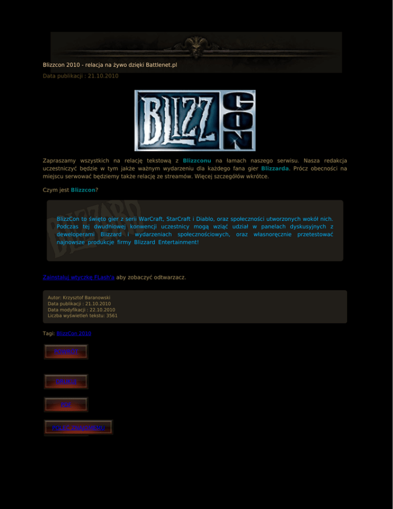 Blizzcon 2010 - relacja na żywo dzięki Battlenet.pl Data publikacji