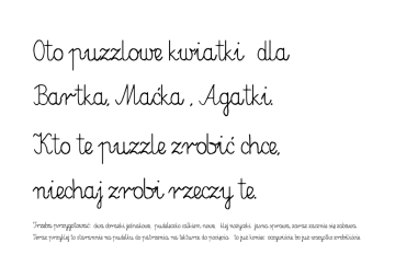 Oto puzzlowe kwiatki- dla Bartka, Maćka , Agatki. Kto te puzzle zrobić chce, niechaj zrobi rzeczy te. Trzeba przygotować: dwa obrazki jednakowe, -pudełeczko całkiem nowe, - klej nożyczki- jasna sprawa, zaraz zacznie się zabawa. > Teraz przyklej to starannie na pudełku do patrzenia, na tekturce, do pocięcia-- to już koniec oczywiście, bo już wszystko zrobiliście. Ta torebka kolorowa to jest praca wyjątkowa. Różnobarwne materiały, igła, nitki, nożyczkiWybierz to, co uszyć chcesz. Sam, co lubisz, dobrze wiesz! Co jest potrzebne; materiał ( dowolny)kolorowe nici. Reklama; Każdy z nas ma swoje tajemnice, każdy z nas swe ulubione miejsca ma. Teraz możesz nam to wszystkim opisać, narysować, zrobić zdjęcia raz i dwa!!!! Co jest potrzebne; ciekawy pomysł, opis tego, co chcesz innym pokazać w formie reklamy. Dobrze, aby to było jakieś ciekawe miejsce, czynność, zajęcie do którego możesz zachęcić innych. Może to być np. muzeum, teatr, ciekawy park, gra- czyli coś co lubisz robić z rodzeństwem, rodziną, kolegami i koleżankami. Praca [powinna być wykonana na kartce A4. Sprawności paszportowe 3klas: • kwiatowe puzzle, • torebka , • reklama: Gorąco polecam….