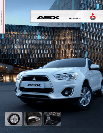 www.mitsubishi.pl AKCESORIA Stylizacja zewnętrzna 2 - 7 Stylizacja wnętrza 8 - 9 Multimedia i nawigacja 10 - 13 Felgi aluminiowe 14 - 15 Komfort 16 - 17 Bezpieczeństwo i ochrona 18 - 19 Transport i wypoczynek 20 - 21 Kolekcja Mitsubishi 22 Wykaz numerów katalogowych 22 Listwy drzwiowe dolne W kolorze srebrnym. MZ314432 (bez zdjęcia) - 23 W kolorze szarym MZ314581 Chromowane listwy ozdobne dolne MZ314598 Paski ozdobne z napisem ASX W kolorze srebrnym. MZ314457 Paski ozdobne z napisem ASX W kolorze szarym. MZ314458 Stylizacja zewnętrzna Osłona ozdobna zderzaka przedniego Narożne owiewki zderzaka przedniego MZ575707EX Tylko w połączeniu ze światłami do jazdy dziennej. Nie stosowane do wersji z silnikiem Diesla. MZ575709EX Światła do jazdy dziennej Tylko w połączeniu z narożnymi owiewkami zderzaka przedniego. Nie stosowane do wersji z silnikiem Diesla. MZ380654EX Paski foliowe do listew drzwiowych dolnych Paski foliowe do listew drzwiowych dolnych W kolorze czarnym. MZ314460 Chromowane. MZ314583 Paski foliowe do listew drzwiowych dolnych Wzór "Carbon". MZ314582 2 3 Osłony lusterek zewnętrznych Osłony lusterek zewnętrznych W kolorze srebrnym. Do lusterek z kierunkowskazami MZ314468 Do lusterek bez kierunkowskazów. MZ314467 (bez zdjęcia) W kolorze aluminium. Do lusterek z kierunkowskazami MZ314586 Do lusterek bez kierunkowskazów. MZ314585 (bez zdjęcia) Osłony lusterek zewnętrznych Osłony lusterek zewnętrznych Wzór "Carbon". Do lusterek z kierunkowskazami MZ314588 Do lusterek bez kierunkowskazów. MZ314587 (bez zdjęcia) Chromowane. Do lusterek z kierunkowskazami MZ569195EX Do lusterek bez kierunkowskazów. MZ569716EX (bez zdjęcia) Nakładki klamek drzwi Do samochodów z KOS. MZ576227EX Do samochodów bez KOS. MZ576228EX (bez zdjęcia) Stylizacja zewnętrzna Folia dekoracyjna na słupki B/C Folia dekoracyjna na słupki B/C W zór "Carbon". MZ314591 Lakier "Piano black". MZ314590 Boczne listwy ochronne Lakierowane w kolorze nadwozia. Szukaj w wykazie numerów katalogowych. Elegance, czarne. MME31952 (bez zdjęcia) 4 5 Listwa pokrywy bagażnika Chromowana. MZ314433 Listwa pokrywy bagażnika W kolorze srebrnym. MZ314434 Listwa pokrywy bagażnika Wzór "Carbon". MZ314589 Stylizacja zewnętrzna Pokrywa wlewu paliwa MZ314642 Końcówka rury wydechowej MME31948 Paski foliowe relingów dachowych słona ozdobna O zderzaka tylnego MZ314459 MZ575708EX 6 7 Stylizacja wnętrza Nakładka ozdobna na zespół sterowania klimatyzacji i nawiewu Lakier "Piano black". MZ314573 W kolorze srebrnym. MZ314462 (bez zdjęcia) W kolorze aluminium. MZ314576 (bez zdjęcia) Ozdobne ramki bocznych nawiewów powietrza W kolorze aluminium. MZ314577 Lakier "Piano black". MZ314574 (bez zdjęcia) Ozdobne ramki głośników W kolorze srebrnym. MZ314464 W kolorze aluminium MZ314578 (bez zdjęcia) W kolorze srebrnym. MZ314463 (bez zdjęcia) Lakier "Piano black" MZ314575 (bez zdjęcia) Nakładki na pedały Do skrzyni manualnej. MZ313904 Do skrzyni automatycznej. MZ313905 (bez zdjęcia) Gałka zmiany biegów Do skrzyni 5- biegowej. MZ314062 Do skrzyni 6- biegowej. MZ314063 (bez zdjęcia) Dźwignia hamulca ręcznego MZ314480 8 9 Multimedia i nawigacja Stacja nawigacyjno/ multimedialna MMCS MZ314723 Zestaw montażowy MMCS Mitsubishi Multi Communication System (MMCS) • Zintegrowany odtwarzacz CD • Dwa gniazda kart SD: do nawigacji (karta 16GB), z muzyką (odtwarza karty SD 2GB, 4GB, 8GB, 16GB lub 32GB), • Wyświetlacz dotykowy 7” do wszystkich funkcji, • Zintegrowany wzmacniacz, • Gniazdo podłączenia kamery cofania • Połączenie Bluetooth do urządzenia głośnomówiącego oraz przesyłania plików muzycznych, • Gniazdo USB do iPod/USB, • Informacje o stylu jazdy ECO route, • połączenie Tunera DAB, • Informacja o warunkach na drodze NAVTEQ Traffic RDS • Mapy Europy zainstalowane na karcie SD, • Funkcje audio sterowane w kierownicy • CD-tekst, • Odtwarza pliki MP3 i WMA • Standardowo wyposażony w tuner TMC, • Automatyczne dostosowanie głośności do prędkości pojazdu, • Szczegółowy zoom skrzyżowań oraz informacje o pasach ruchu, • Informacje komputera pokładowego: prędkość średnia, średnie zużycie paliwa, chwilowe zużycie paliwa, czas jazdy, dystans MZ314783 przebyty po zatankowaniu, pomiar czasu odcinka, wysokościomierz, barometr, temperatura zewnętrzna, wyświetlacz klimatyzacji • Możliwość indywidualnych ustawień funkcji pojazdu (centralny zamek, światła do jazdy dziennej, wycieraczki szyb, kierunkowskazy, automatyczne składanie lusterek, oświetlenie wnętrza) • Współpracuje zarówno ze standardowym systemem 6-głośnikowym jak również z 9- głośnikowym Rockford Fosgate • 4 x 45W • Menu w 12 językach zdobna nakładka panelu O centralnego W kolorze aluminium. L akier "Piano black" (bez zdjęcia) W kolorze srebrnym (bez zdjęcia) S zukaj w wykazie numerów katalogowych. Instrukcja obsługi w języku polskim OMCO13E1 10 11 Multimedia i nawigacja Stacja nawigacyjno / multimedialna MZ314553AP Stacja nawigacyjno / multimedialna (NMS-ONE) MONITOR & DESIGN • Ekran startowy Mitsubishi, • Wyświetlacz kolorowy LCD 6,2" WVGA, • 800 x 480 pikseli, • Sterowany dotykowo. FUNKCJE AUDIO & VIDEO • Wzmacniacz dużej mocy 4 x 50 W, • 2 bezpośrednie wejścia AV, • Tylne wyjście RCA, • Wejście mini jack (w zestawie przewód AV) • Odtwarza DVD-Video / DVD +/R/RW, CD-DA / CD-R/RW • Kompatybilny z ID-3 tag, • Odtwarza pliki MP3 / WMA / mp4 / avi (CD/DVD/USB) • Wbudowany moduł Parrot Bluetooth 2.0+EDR • Wbudowany mikrofon + regulacja wzmocnienia, • Obsługa iPod / iPhone - bezpośrednie sterowanie przez USB • Tylne gniazdo USB z przewodem 1 m. TUNER • Pamięć 24 stacji (18FM / 6MW) OGÓLNE • Wejście do sterowania funkcji z kierownicy, • Tylne wejście kamery cofania. NAWIGACJA • Moduł z procesorem 600 MHz, • Karta pamięci micro-SD 8GB z mapami, • Możliwość bezpłatnej aktualizacji map w okresie 