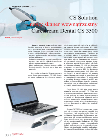 Informacje rynkowe _ Optident CS Solution – nowy skaner wewnątrzustny Carestream Dental CS 3500 Autor_Michał Dragan _Skanery wewnątrzustne stają się coraz bardziej popularne w branży stomatologicznej, a wyciski cyfrowe zastępują konwencjonalne. Popyt na skanery wewnątrzustne jest większy niż kiedykolwiek z kilku powodów: _pacjenci nie lubią smaku tradycyjnego materiału wyciskowego, _jednowizytowe zabiegi są mniej czasochłonne, _pacjenci chcą widzieć efekt końcowy leczenia już podczas pierwszej wizyty. _kiedy pacjent może zobaczyć końcowy efekt leczenia, częściej decyduje się na jego rozpoczęcie. Korzystając z obrazów 3D generowanych przez skaner wewnątrzustny CS 3500, dentysta może zaplanować i wyfrezować uzupeł- nienie protetyczne dla pacjentów w gabinecie za pomocą frezarki gabinetowej CS 3000, bez korzystania z pomocy laboratorium dentystycznego, uzyskując anatomiczny kształt uzupełnienia protetycznego. Zwiększa to wydajność lekarza i umożliwia wykonanie uzupełnień protetycznych dla pacjenta podczas jednej wizyty. Zaawansowana technologia gwarantuje poprawność każdego skanu, a wirtualne wyciski jeszcze nigdy nie były tak łatwe do pobrania. CS 3500 jest skanerem otwartym, co umożliwia wysyłanie plików ze skanera w formacie STL do dowolnego laboratorium protetycznego, jeśli lekarz nie ma frezarki w swojej praktyce lub napotka skomplikowany przypadek ze specyicznymi wymaganiami i materiałami. W porównaniu z metodami konwencjonalnymi, dzięki wyciskom cyfrowym lekarze dentyści mogą zaoszczędzić czas, a jednocześnie produkować wysokiej, jakości uzupełnienia protetyczne. Czym skaner CS 3500 różni się od innych skanerów wewnątrzustnych? CS 3500 rozwiązuje typowe problemy, które często napotykano podczas używania dotychczasowych urządzeń, tj.: konieczność używania pudru podczas skanowania, skomplikowane oprogramowanie, ciężkie wózki, lusterka parujące podczas skanowania, a także niska prędkość skanowania. Skaner CS 3500 jest innowacyjny, ponieważ nie wymaga zewnętrznej grzałki, jest bezpudrowy i nie posiada wózka. Może być podłączony bezpośrednio do komputera stacjonarnego lub laptopa, dzięki czemu można łatwo przemieszczać się z nim z pomieszczenia do pomieszczenia. Dodatkowo, CS 3500 posiada unikalny system naprowadzania światła podczas procesu skanowania obrazu. Skaner oferuje również wysokiej rozdzielczości kamerę 2D, dzięki której można robić zdję- 38 CAD/CAM 4_2014 Informacje rynkowe _ Optident cia w naturalnych kolorach w formacie jpg. CS 3500 zawiera również narzędzie do wyznaczania granicy preparacji. Funkcje te zostały zaprojektowane w celu poprawy komunikacji między dentystą i laboratorium oraz przyspieszenia procesu skanowania. Oprócz zapisywania obrazów 2D, skaner CS 3500 zapisuje również wysokiej rozdzielczości obrazy 3D, które mogą pomóc dentyście w wizualizacji naturalnej struktury zęba oraz tkanek miękkich, a dzięki temu ułatwić wyznaczenie granic preparacji. Skaner charakteryzuje się wysokim kątem skanowania do 45° oraz głębokością skanu od -2 do 13 mm. Funkcje te pomagają uczynić proces skanowania wydajnym oraz bardziej precyzyjnym. Wewnętrzna grzałka dodatkowo przyczynia się do efektywnego skanowania, zapobiegając parowaniu końcówki. Inne skanery wymagają dokowania skanera w wózku celem utrzymania odpowiedniej temperatury końcówki podczas pracy, co może wydłużyć czas skanowania. Lekka konstrukcja urządzenia sprawia, że skanowanie pełnego łuku jest procedurą łatwą i przyjazną. Skaner wyposażony jest w jednorazowe końcówki, które mogą być sterylizowane w autoklawie do 30 razy. CS 3500 posiada końcówki w 2 rozmiarach dla dorosłych oraz dla dzieci i dorosłych z mniejszymi ustami. Skaner automatycznie wykrywa, która końcówka jest używana. Wiele konkurencyjnych skanerów ma stałe metalowe końcówki w jednym rozmiarze. Jak zapewnia producent, po wprowadzeniu skanera CS 3500 do codziennej praktyki lekarza dentysty, uzupełnienia protetyczne nigdy już nie będą takie same. Skaner CS3500 jest najłatwiejszym w obsłudze skanerem, co czyni go najbardziej na świecie przyjaznym dla dentysty. Nie bez przyczyny światowa kampania marketingowa odbywa się pod hasłem „Welcome to New Reality”. Nowe rozwiązania zostały zaprojektowane, aby maksymalnie usprawnić pracę dentystów. Innowacyjność systemu CS Solution polega na jego otwartości – dzięki temu użytkownik może zakupić cały system lub zintegrować poszczególne jego części wg własnych potrzeb._ _kontakt Optident M. Foubert, D. Stój S.J. Ul. Jeździecka 12 53-032 Wrocław Ul. Biały Kamień 5 02-593 Warszawa Tel.: 693 388 688 CAD/CAM 4_2014 39