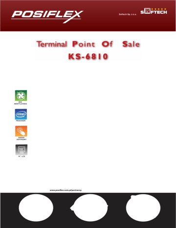 Softech Sp. z o.o. ul. Palisadowa 20/22 | 01-940 Warszawa tel. +48 22 610 77 42 | www.posiflex.com.pl Terminal Point Of Sale KS-6810 BEZ WENTYLATORA PROCESOR EKRAN DOTYKOWY 10’’ 10’’ LCD Ogólnopolska sieć sprzedaży Posiflex na: www.posiflex.com.pl/partnerzy Drukarka bonowa AURA - 8000 Klawiatura programowalna KB-6800 Monitor dotykowy TM-7115 Specyfikacja Terminal Posiflex „Fan Free” KS-6810 posiada 10” ekran dotykowy i niewielkie rozmiary. Mimo swoich rozmiarów, pozostaje ultra szybki - dzięki procesorowi Intel Atom™. Dodatkowym atutem jest 5 gniazd USB, które pozwalają na współpracę z dużą ilością urządzeń peryferyjnych. Specyfikacja KS-6810 Procesor Intel Atom N270 1.6GHz / 512K Cache CPU Pamięć DDR2 400/533 MHz, SO-DIMM x 1, max 2 GB, domyślnie 1GB Pamięć masowa 2.5” SATA HDD lub dysk SSD (opcja) lub karta CF (opcja) Zasilanie 12V DC zasilacz, 50W Audio Wbudowany głośnik 2W Systemy Windows XP Pro / WEPOS / POSReady / Win 7 Ekran ₪₪Wbudowany czytnik kart magnetycznych. ₪₪Wysokiej jakości 10” ekran dotykowy, pozwala na pracę palcem lub rysikiem. ₪₪Technologia procesora Intel Atom™ zapewnia niskie zużycie energii. ₪₪Nowoczesny wygląd i solidna konstrukcja obudowy. ₪₪Innowacyjna konstrukcja obudowy bez wentylatora „Fan Free” została wykonana z odlewu aluminium, dzięki czemu doskonale przewodzi ciepło i zapewnia wydajne chłodzenie urządzenia. ₪₪Dostosowany do pracy w ekstremalnych warunkach dzięki nieobecności otworów wentylacyjnych. ₪₪Gwarancja 24 miesiące. LCD 10.4” TFT LCD, rozdzielczość 800x600 Panel dotykowy rezystywny, 5-żyłowy, interfejs USB Kontrola jasności przez oprogramowanie Nachylenie od 20° do 90° Połączenia LAN 10 / 100 / 1000 Mb Port równoległy Opcja Port szeregowy DB9 x2, RJ-45x1 (RJ-45 do DB9 opcja), z 5V na COM1/COM2 Liczba portów USB 5 CR 1, Control 2 CR Kamera 2.0 M pixel, USB interfejs (opcja) Zestaw słuchawkowy (opcja) Parametry fizyczne Proponowane akcesoria Wymiary (dł. x szer. x wys. w mm) 255 X 210 X 250 Waga (w kg) 3.2 Środowisko Praca 0°C - 40°C, 20%RH - 90%RH Przechowywanie (-20°C) - 70°C, 10%RH - 90%RH Opcje PD-309 / PD309U 2x20 LCD, 200mm wolnostojący PD-2605 / PD2605U 2x20 VFD, 200mm wolnostojący PD-76X4 240x64 px graficzny LCD, 200mm wolnostojący SSD 8GB minimum CF Card Karta typ I MSR zintegr. 2 lub 3 ścieżkowy oraz JIS-II Kolor v Informacje i specyfikacja produktu mogą ulec zmianie. Opcjonalny kolor szary z zestawem słuchawkowym oraz kamerą Czytnik kart magnetycznych zintegrowany z monitorem Drugi monitor (dla klienta) LM-6500 Wyświetlacz dla klienta wolnostojący Skaner kodów kreskowych LS-1000 Wyświetlacz dla klienta PD-7600 Szuflada kasowa CR-4000