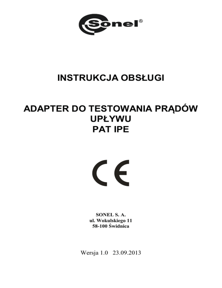 INSTRUKCJA OBSŁUGI ADAPTER DO TESTOWANIA PRĄDÓW UPŁYWU PAT IPE SONEL S. A. ul. Wokulskiego 11 58-100 Świdnica Wersja 1.0 23.09.2013 2 INSTRUKCJA OBSŁUGI ADAPTER PAT IPE wersja 1.0 SPIS TREŚCI 1 BEZPIECZEŃSTWO ...............................................................................................4 2 ZASTOSOWANIE ADAPTERA ............................................................................5 2.1 2.2 POMIAR PRĄDU UPŁYWU PIERWOTNEGO OBWODU SPAWARKI...................................5 POMIAR PRĄDU UPŁYWU PE URZĄDZEŃ TRÓJFAZOWYCH. ........................................9 3 CZYSZCZENIE I KONSERWACJA ...................................................................11 4 ROZBIÓRKA I UTYLIZACJA ............................................................................11 5 PRODUCENT .........................................................................................................11 6 USŁUGI LABORATORYJNE ..............................................................................12 INSTRUKCJA OBSŁUGI ADAPTER PAT IPE wersja 1.0 3 1 Bezpieczeństwo Adapter wraz z przyrządem PAT-806 przeznaczony jest do badań kontrolnych sprzętu do spawania łukowego jedno- i trójfazowego w zakresie pomiaru pierwotnego prądu upływu. Dodatkowo adapter umożliwia pomiar prądu upływu PE urządzeń trójfazowych. Standard gniazd trójfazowych: 16A i 32A. UWAGA! Adapter może być stosowany wyłącznie we współpracy z przyrządem PAT-806 do pomiaru prądu upływu obwodu pierwotnego spawarki oraz pomiaru prądu upływu PE urządzeń trójfazowych. Zastosowanie inne niż podane w tej instrukcji, może być źródłem poważnego niebezpieczeństwa dla użytkownika. Nie wolno używać adaptera jako przedłużacza. Nie wolno używać adaptera do pomiaru mocy. UWAGA! Nie wolno dotykać urządzenia podłączonego do adaptera. UWAGA! W czasie testu należy używać wyłącznie jednego obwodu adaptera. Nieużywane wtyczki adaptera powinny znajdować się w odpowiednich jego gniazdach. UWAGA! Badane urządzenie podłączone do adaptera pozbawione jest bezpośredniego połączenia z PE sieci zasilającej. UWAGA! Producent nie ponosi odpowiedzialności za straty wynikłe z podłączenia do adaptera uszkodzonego urządzenia. 4 INSTRUKCJA OBSŁUGI ADAPTER PAT IPE wersja 1.0 2 Zastosowanie adaptera 2.1 Pomiar prądu upływu pierwotnego obwodu spawarki. Adapter we współpracy z miernikiem PAT-806 służy do wygodnego sprawdzania prądu upływu obwodu pierwotnego spawarki przy zasilaniu jej z sieci jednofazowej 230 V AC lub trójfazowej z zabezpieczeniem 16 A lub 32 A. Włączyć zasilanie przyrządu PAT-806. Wcisnąć dwukrotnie przycisk IT/IP. Pokaże się ekran gotowości do pomiaru. W przypadku konieczności zmiany parametrów wcisnąć przycisk SET. Przyciskami upływu IP. , ustawić górną granicę (limit górny) prądu INSTRUKCJA OBSŁUGI ADAPTER PAT IPE wersja 1.0 5 Przyciskami przyciskami , , przejść do ustawiania czasu pomiaru, ustawić czas pomiaru. Przyciskiem ENTER zatwierdzić ustawienia. W zależności od rodzaju zasilania spawarki zmontować jeden z poniższych układów. Nieużywane przewody wetknąć w odpowiednie gniazda. Gniazdo bananowe adaptera połączyć z gniazdem I2 przyrządu PAT-806. Zasilanie z sieci 230 V 6 INSTRUKCJA OBSŁUGI ADAPTER PAT IPE wersja 1.0 Zasilanie z sieci trójfazowej 16 A Zasilanie z sieci trójfazowej 32 A Przy ustawionym pomiarze ciągłym (czas = ) wcisnąć i przytrzymać przycisk START. Aby zablokować trwanie pomiaru wcisnąć przycisk ENTER. Przy czasie ustawionym na konkretną wartość nie jest to potrzebne. INSTRUKCJA OBSŁUGI ADAPTER PAT IPE wersja 1.0 7 Wygląd ekranu w czasie pomiaru. Czas pozostały do końca pomiaru Pomiar kończy się po upływie ustawionego czasu lub po wciśnięciu przycisku STOP/ESC. Po zakończeniu pomiaru odczytać wynik. Wynik poprawny: IP < LIMIT Wynik niepoprawny: IP > LIMIT 8 INSTRUKCJA OBSŁUGI ADAPTER PAT IPE wersja 1.0 2.2 Pomiar prądu upływu PE urządzeń trójfazowych. Adapter może służyć także do wygodnego sprawdzania prądu upływu PE urządzeń trójfazowych przy zasilaniu ich z sieci trójfazowej z zabezpieczeniem 16 A lub 32 A. Wcisnąć przycisk IPE. Pokaże się ekran gotowości do pomiaru. Podłączyć wtyczkę sieciową badanego urządzenia do gniazda pomiarowego. Dodatkowo jest możliwość wykonania pomiaru przy pomocy sondy podłączonej do gniazda RISO-. Zasilanie z sieci trójfazowej 16 A INSTRUKCJA OBSŁUGI ADAPTER PAT IPE wersja 1.0 9 Zasilanie z sieci trójfazowej 32 A Uwagi: Podczas pomiaru na gniazdku pomiarowym występuje napięcie sieciowe zasilające miernik. Podczas pomiaru wadliwego urządzenia może zostać wyzwolony wyłącznik RCD. - Prąd upływu w PE mierzony jest bezpośrednio w tej linii, dzięki czemu można go dokładnie zmierzyć, nawet jeżeli urządzenie pobiera 10A, 16A czy więcej. Należy jednak wziąć pod uwagę fakt, że jeżeli upływ jest nie do PE a do innych uziemionych elementów (np rura wodociągowa) – nie da się go zmierzyć w tej funkcji pomiarowej. - Należy zapewnić izolowane położenie badanego urządzenia. - Badane urządzenie musi być włączone. - Szczegóły dotyczące ustawień parametrów poszczególnych pomiarów znajdują się w instrukcji obsługi mierników serii PAT. - Pomiar prądu upływu PE dla urządzeń jednofazowych należy wykonać bezpośrednio na gnieździe pomiarowym miernika serii PAT firmy Sonel S.A, bez użycia adaptera PAT-IP. 10 INSTRUKCJA OBSŁUGI ADAPTER PAT IPE wersja 1.0 3 Czyszczenie i konserwacja UWAGA! Należy stosować jedynie metody konserwacji podane przez producenta w niniejszej instrukcji. Obudowę adaptera można czyścić miękką, wilgotną szmatką używając ogólnie dostępnych detergentów. Nie należy używać żadnych rozpuszczalników ani środków czyszczących, które mogłyby porysować obudowę (proszki, pasty itp.). 4 Rozbiórka i utylizacja Zużyty sprzęt elektryczny i