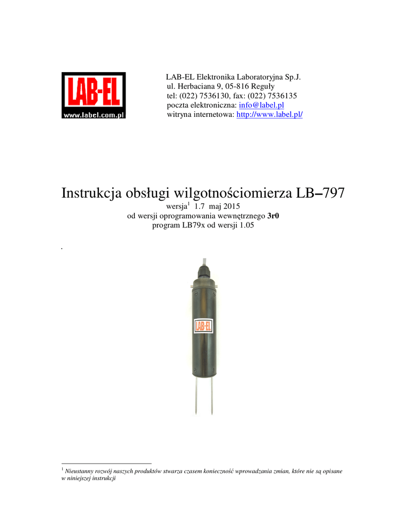 Instrukcja obsługi wilgotnościomierza LB–797 - LAB-EL