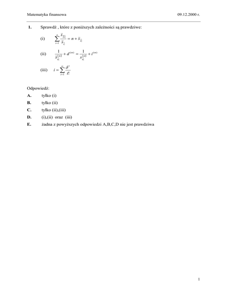 1. Sprawdź , które z poniższych zależności są prawdziwe: (i) sn