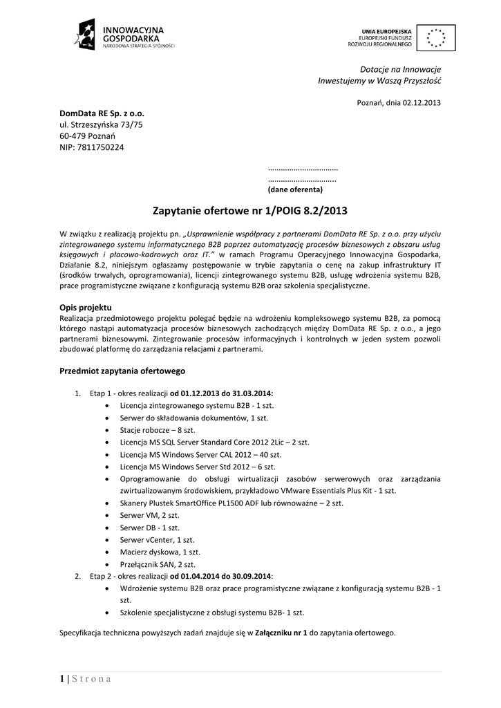 Zapytanie ofertowe - DomData RE Sp. z oo