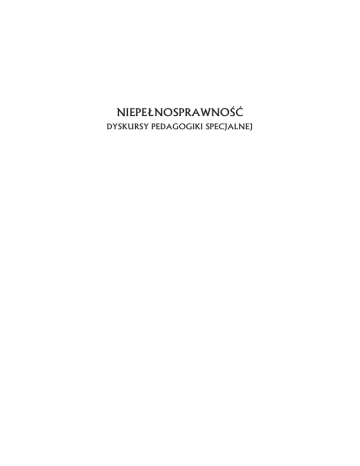 NIEPE£NOSPRAWNOŒÆ DYSKURSY PEDAGOGIKI SPECJALNEJ NIEPE£NOSPRAWNOŒÆ DYSKURSY PEDAGOGIKI SPECJALNEJ Pedagog – Nauczyciel – Terapeuta Nr 16 Gdañsk 2014 Komitet Naukowy doc. dr hab. Jaros³aw Balvin (Uniwersytet w Zlín), prof. dr Ursula Horsch (Uniwersytet w Heidelbergu), prof. dr hab. Iwona Chrzanowska (UAM, Poznañ), prof. dr hab. Svetlana Konyushenko (Uniwersytet im. E. Kanta, Kaliningrad), doc. PhDr. Jaroslav Veteška (Uniwersytet w Pardubicach), dr hab. Teresa ¯ó³kowska (prof. USz., Szczecin) Komitet Redakcyjny Amadeusz Krause (red. nacz.), Jolanta RzeŸnicka-Krupa (z-ca. red. nacz.) Joanna Belzyt, S³awomira Sadowska, Karolina Tersa (sekretarz redakcji ) Czasopismo recenzowane (tryb recenzowania i informacje dla autorów na stronie www.niepelnosprawnosc.ug.edu.pl) Redaktor naukowy tomu Dorota Krzemiñska Korekta techniczna, sk³ad i ³amanie Urszula Jêdryczka Publikacja dofinansowana ze œrodków Wydzia³u Nauk Spo³ecznych Uniwersytetu Gdañskiego Wersja drukowana jest wersj¹ pierwotn¹ czasopisma „Niepe³nosprawnoœæ” ISSN 2080-9476 Wydawnictwo Uniwersytetu Gdañskiego ul. Armii Krajowej 119/121, 81-824 Sopot tel./fax 58 523 11 37, tel. 725 991 206 e-mail: [email protected] www.wyd.ug.edu.pl Ksiêgarnia internetowa: www.kiw.ug.edu.pl Spis treœci Contents Od Redakcji . . . . . . . . . . . . . . . . . . . . . . . . . . . . . . . . . . . . . . . . . . . . . . . . . . . . . . . . Editor's Note 7 Franciszek Wojciechowski, Sylwia Opozda-Suder Osobowe i spo³eczne nastêpstwa niepe³nosprawnoœci. Teoretyczne podstawy interpretacji . . . . . . . . . . . . . . . . . . . . . . . . . . . . . . . . . 11 Personal and social consequences of disability. Theoretical basis of interpretation Rafa³ Abramciow, Agnieszka Lewicka-Zelent Specyfika fenomenologicznego ujêcia poznania i doœwiadczenia a jej u¿ytecznoœæ dla pedagogiki i terapii psychologicznej . . . . . . . . . . . . . . 33 The specificity of phenomenological cognition and experience and its usefulness for education and psychological therapy Joanna Iza Belzyt Cia³o w sytuacji niepe³nosprawnoœci – kontrola, odrzucenie i dzia³ania terapeutyczne . . . . . . . . . . . . . . . . . . . . . . . . . . . . . . . . . . . . . . . . . . 41 The body in the case of disability – control, rejection and therapeutic work Izabela Fornalik Pedagog specjalny w roli edukatora seksualnego. Miêdzy niepewnoœci¹ a poczuciem powinnoœci . . . . . . . . . . . . . . . . . . . . . . . . . . . . . . 53 Special educator as sexual educator. Somewhere between uncertainty and sense of duty Marzena Buchnat, Katarzyna Waszyñska Edukacja seksualna uczniów z lekk¹ niepe³nosprawnoœci¹ intelektualn¹ w opinii nauczycieli z nimi pracuj¹cych . . . . . . . . . . . . . . . . . 74 Sexual education of students with mild intellectual disability in the opinion of teachers working with these students Danuta Grzybowska Osoba z niepe³nosprawnoœci¹ intelektualn¹ i dziecko jako szczególne podmioty diagnozy w interpretacji przysz³ych pedagogów . . . . . . . . . . . . 83 A person with intellectual disability and a child as a special subjects of diagnosis in the interpretation of a budding educators Karolina Tersa Kompetencje diagnostyczne nauczycieli. Oczekiwania i wyzwania . . . . . . 90 Teachers’ diagnostic skills. Expectations and challenges 6 Karol Bidziñski Subiektywna ocena uzyskiwanego wsparcia zawodowego a nasilenie sytuacji trudnych odczuwanych przez nauczycieli podczas wykonywania zadañ zwi¹zanych z realizacj¹ specjalnych potrzeb edukacyjnych uczniów . . . . . . . . . . . . . . . . . . . . . . . . . . . . . . . . . . . . . . 106 The scope of difficult situations experienced by the teachers while executing tasks related to the realization of special educational needs of students and the assessment of support obtained from various entities within school psychological and pedagogical assistance system Ewa Karabanowicz Radzenie sobie ze stresem i obci¹¿eniem psychicznym nauczycieli szkó³ specjalnych i ogólnodostêpnych . . . . . . . . . . . . . . . . . . . . . . . . . . . . . . . 126 Coping with stress and psychological burden by public and special schools teachers Anna Ozga Lokalizacja szkó³ a mo¿liwoœci pozyskania wsparcia przez nauczycieli województwa œwiêtokrzyskiego realizuj¹cych specjalne potrzeby edukacyjne uczniów . . . . . . . . . . . . . . . . . . . . . . . . . . . . . . . . . . . . . . . . . . . . . . 144 Location of schools in relation to chances for obtaining support from the perspective of the teachers in Œwiêtokrzyskie voivodeship addressing special educational needs of the students Dorota Krzemiñska Style bycia/dzia³ania terapeutów jako asumpt do rozwa¿añ o placówkach wsparcia doros³ych osób z g³êbsz¹ niepe³nosprawnoœci¹ intelektualn¹ . . . . . . . . . . . . . . . . . . . . . . . . . . . . . . . . . . . . . . . . . . . . . . . . . . . . . 155 Styles of being/activity of therapists as a contribution to reflect on institutions supporting adults with intellectual disability Agnieszka Woynarowska, Jolanta RzeŸnicka-Krupa Znaczenia nadawane wsparciu w doros³oœci i w³asnej w nim roli przez terapeutów doros³ych osób z niepe³nosprawnoœci¹ intelektualn¹ . . . 174 The meanings therapists apply and view their role in supporting adulthood of persons with intellectual disability Eliza Czerka-Fortuna Dylematy moralne w pracy terapeutycznej. Wskazania dla zawodów pomocowych . . . . . . . . . . . . . . . . . . . . . . . . . . . . . . . . . . . . . . . . . . . . . . . . . . . . . 186 Moral dilemmas in therapy. Recommendations for the helping professions Iwona Lindyberg Choroba nowotworowa w doœwiadczeniu biograficznym osoby z g³êbsz¹ niepe³nosprawnoœci¹ intelektualn¹. Refleksja badacza – terapeuty . . . . . . . . . . . . . . . . . . . . . . . . . . . . . . . . . . . . . . . . . . . . . . . 197 Cancer in the biographical experience of a person with intellectual disability. Reflectio