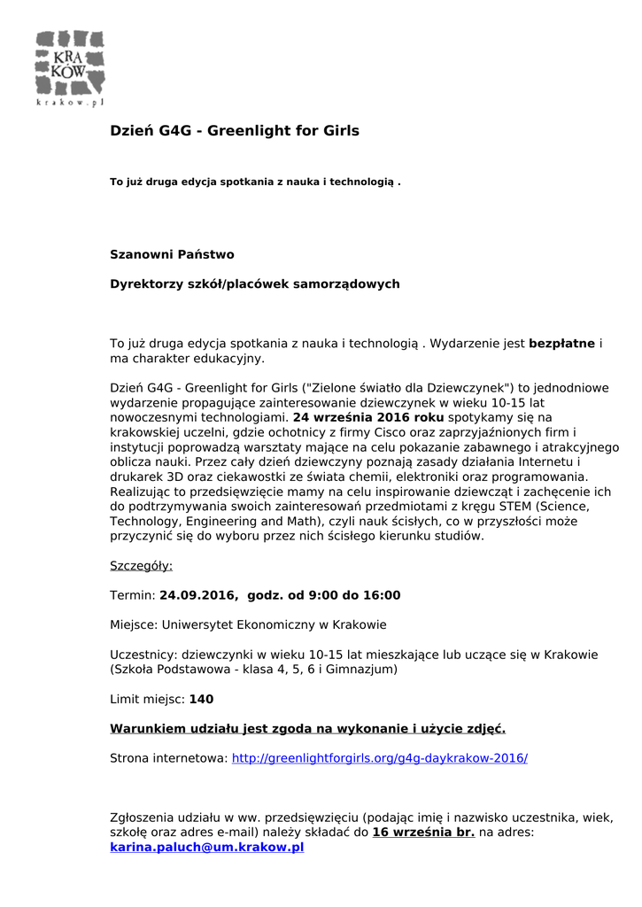 Strona internetowa: http://greenlightforgirls.org/g4g-daykrakow-2016/