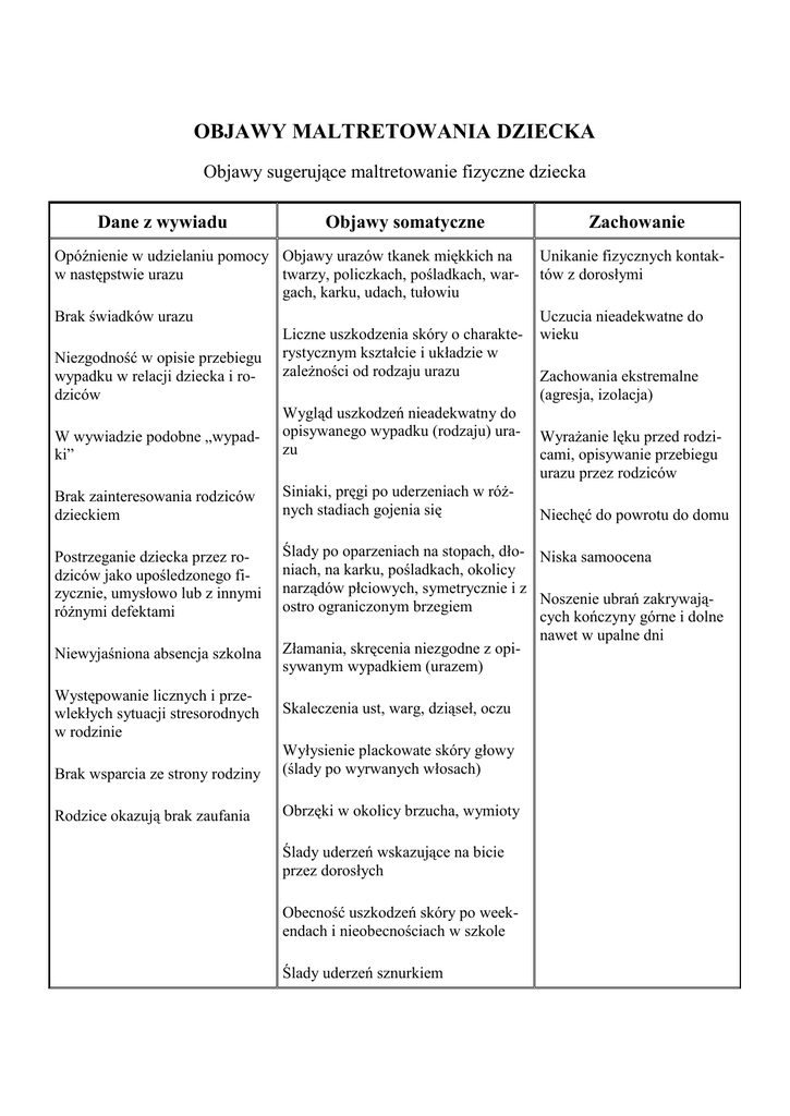 OBJAWY MALTRETOWANIA DZIECKA