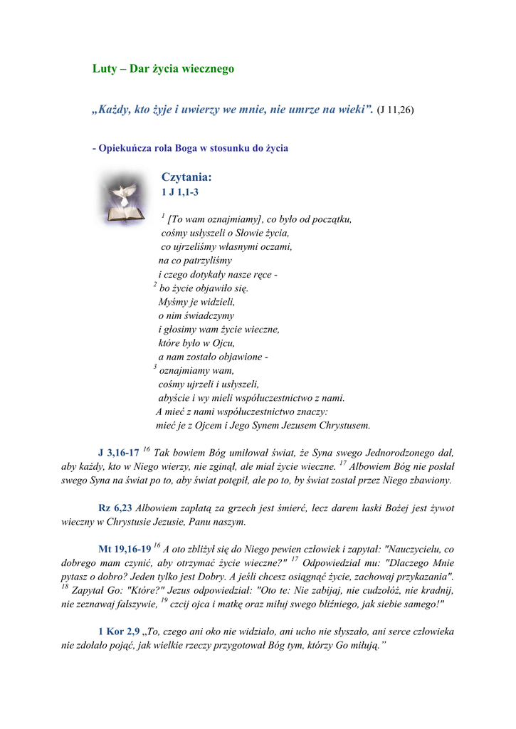 Luty – Dar życia wiecznego „Każdy, kto żyje i uwierzy we mnie, nie
