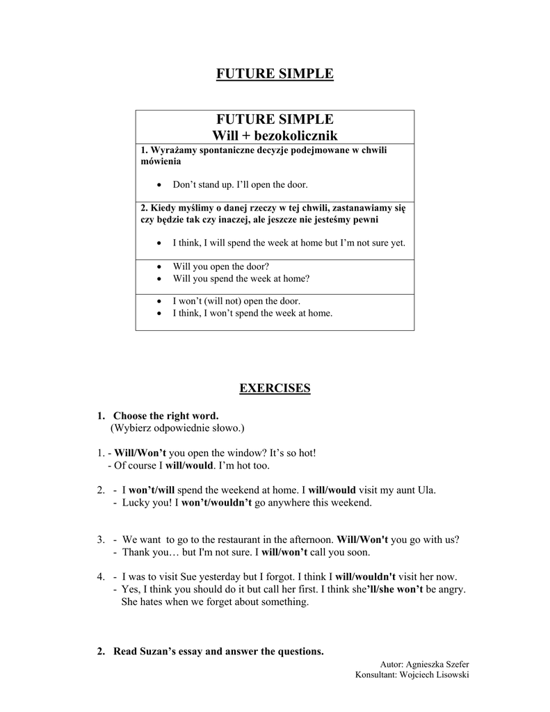 future simple - LOGIM.EDU.GORZOW.PL :: Strona Główna