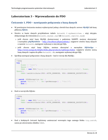 Laboratorium 3 – Wprowadzenie do PDO