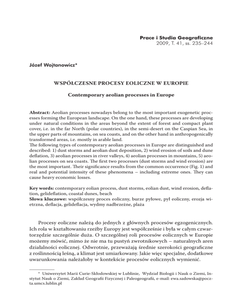 WSPÓŁCZESNE PROCESY EOLICZNE W EUROPIE Contemporary