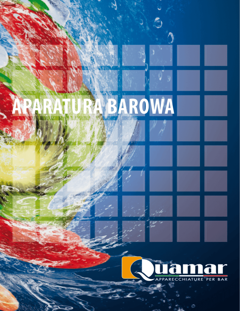 APArATUrA BArOWA Ekstremalny dynamizm osiągnięty przez Quamar, nabyty dzięki współpracy z Klientami, przyczynił się w niniejszym katalogu do wzbogacenia design’u, nowego logo oraz produktów, które uzupełniają i wzbogacają naszą ofertę. Najważniejszą zmianą jest wprowadzenie dwóch nowych linii: zmywarek do naczyń i kostkarek, które można znaleźć w pozostałych dwóch katalogach, w których prezentujemy modele produktów oraz dane techniczne. Strona internetowa www.quamar.pl została zaktualizowana o nowe narzędzia. Najważniejszą funkcją jest możliwość pobierania rozwiniętych podglądów produktów, co umożliwia intuicyjne wyszukiwanie części zamiennych. Ze strony internetowej mamy również możliwość pobrania w każdej chwili broszury wraz z opisem wszystkich produktów oraz kompletnymi danymi technicznymi. Nowy layout, produkty oraz ulepszenie funkcjonalności w naszym serwisie, to tylko niektóre z atutów, które osiągnęliśmy na przestrzeni ostatnich kilku lat. Są one dowodem na to, iż Quamar zawsze przyczyniał się do tworzenia najbardziej skutecznych rozwiązań, dbając tym samym o relację klientfirma opartą na wzajemnym zaufaniu, mając na celu optymalizację jakości oferowanych usług. The extreme dynamism acquired by Quamar, an achievement of the collaboration with its customers, has resulted in this new catalogue enriched with a new look, a new logo and new products that integrate and increase the range available. The most important innovation is the introduction of two new lines: dishwashers and ice makers, which can be found in their two separate catalogues, where you can easily find versions, Versions and technical information needed to match needs with the correct purchase. The web-site www.quamar.pl has been upgraded with some new instruments: the most important is the possibility to download the exploded views of the products to make very easy and intuitive the research of the spare parts needed. Still remains the possibility to download at any time the brochure with the complete technical features of all our products. This new page layout, the new products and the improvement of the service offered by our website, are a few steps that we have taken in our progress that we have undertaken in the last few years. They demonstrate, as a general guide, what Quamar has always adhered to in creating a more reciprocal trustful collaboration that fundamentally focuses on the most effective improvements aimed at optimising the quality of the products and services offered. 2 3 rĘczNA WyciSKArKA dO cyTrUSóW / maNuaL ciTRuS SQuEEZER SE/01 mała profesjonalna ręczna wyciskarka do owoców cytrusowych. SE/01 jest solidnym urządzeniem o niskiej prędkości. może być stosowana jako urządzenie gospodarstwa domowego. Kolor: srebrnoszary Korpus: ABS Miska: stal nierdzewna - zdejmowana Stożek: stalowy z filtrem (nadaje się do cytryn, pomarańczy i grejpfrutów) Napięcie: 220-240 v – 50 Hz Moc: 80 W Obroty: 80/min. Wymiary: 200 x 200 x 260 mm (szerokość x głębokość x wysokość) Waga netto: 3 kg Wymiary opakowania: 240 x 190 x 290 mm (szerokość x głębokość x wysokość) Waga brutto: 3,5 kg Objętość: 0,013 m3 4 A small professional appliance for manual squeezing of citrus fruits. The SE/01 is a strong and low speed appliance, can be used as a household appliance. Colors: silver grey Body: ABS Bowl: stainless - removable Cone: stainless steel press cone Tension: 220-240 v – 50 Hz Power: 80 W R.P.M.: 80/min. Dimensions: 200 x 200 x 260 mm (width x depth x height) Net weight: 3 Kg Packaging dimensions: 240 x 190 x 290 mm (width x depth x height) Gross weight: 3,5 Kg Volume: 0,013 m3 5 rĘczNA WyciSKArKA dO cyTrUSóW/ maNuaL ciTRuS SQuEEZER T89 Wyciskarka T89 wyposażona jest w głęboki wyjmowany pojemnik. Jest bardzo poręczna do wyciskania owoców cytrusowych takich jak cytryny, pomarańcze czy grejpfruty. Kolor: srebrnoszary Korpus: ABS Miska: stal nierdzewna - zdejmowana Stożek: stalowy z filtrem (nadaje się do cytryn, pomarańczy i grejpfrutów) Napięcie: 220-240 v – 60 Hz Moc: 200 W Obroty: 1400/min. Wymiary: 200 x 200 x 320 mm (szerokość x głębokość x wysokość) Waga netto: 5 kg Wymiary opakowania: 270 x 260 x 334 mm (szerokość x głębokość x wysokość) Waga brutto: 6 kg Objętość: 0,024 m3 6 The T89 citrus squeezer is provided with a deep, large removable tray. Handy for manual squeeze. Colors: silver grey Body: ABS Bowl: removable stainless steel Cone: press cone with sifter suitable for all citrus fruits Tension: 220-240 v – 60 Hz Power: 200 W R.P.M.: 1.400/min. Dimensions: 200 x 200 x 320 mm (width x depth x height) Net weight: 5 Kg Packaging dimensions: 270 x 260 x 334 mm (width x depth x height) Gross weight: 6 Kg Volume: 0,024 m3 7 AUTOmatyczna wyciskarka do cytrusów / automatic CITRUS SQUEEZER T94 Wyciskarka do cytrusów T94 zaprojektowana w wyjątkowym stylu, jest idealnym urządzeniem do szybkiego przygotowywania świeżych soków owocowych. Łatwa w obsłudze i czyszczeniu. Kolor: korpus ze stali nierdzewnej, podstawa z aluminium w kolorze szarym Korpus: stal nierdzewna Miska i stożek: zdejmowane ze stali nierdzewnej Wyłącznik silnika: elektryczny Stożek: z wbudowanym filtrem, przystosowany dla cytryn, pomarańczy i grejpfrutów Start: automatyczny, po dociśnięciu pokrywy Napięcie: 220-240 v – 50 Hz Moc: 350 W Obroty: 900/min. Wymiary: 180 x 290 x 400 mm (szerokość x głębokość x wysokość) Waga netto: 7 kg Wymiary opakowania: 340 x 250 x 403 mm (szerokość x głębokość x wysokość) Waga brutto: 8,2 kg Objętość: 0,034 m3 8 The T94 citrus squeezer with its unique style is the perfect appliance for quick and fresh fruit juices. Easy to use and clean. Colors: stainless steel body, aluminium base in diaper grey color Body: stainless steel Bowl and cone: removable stainless steel. Motor switch: electric Cone: cones with sifter Tension: 220-240 v – 60 Hz Power: 35