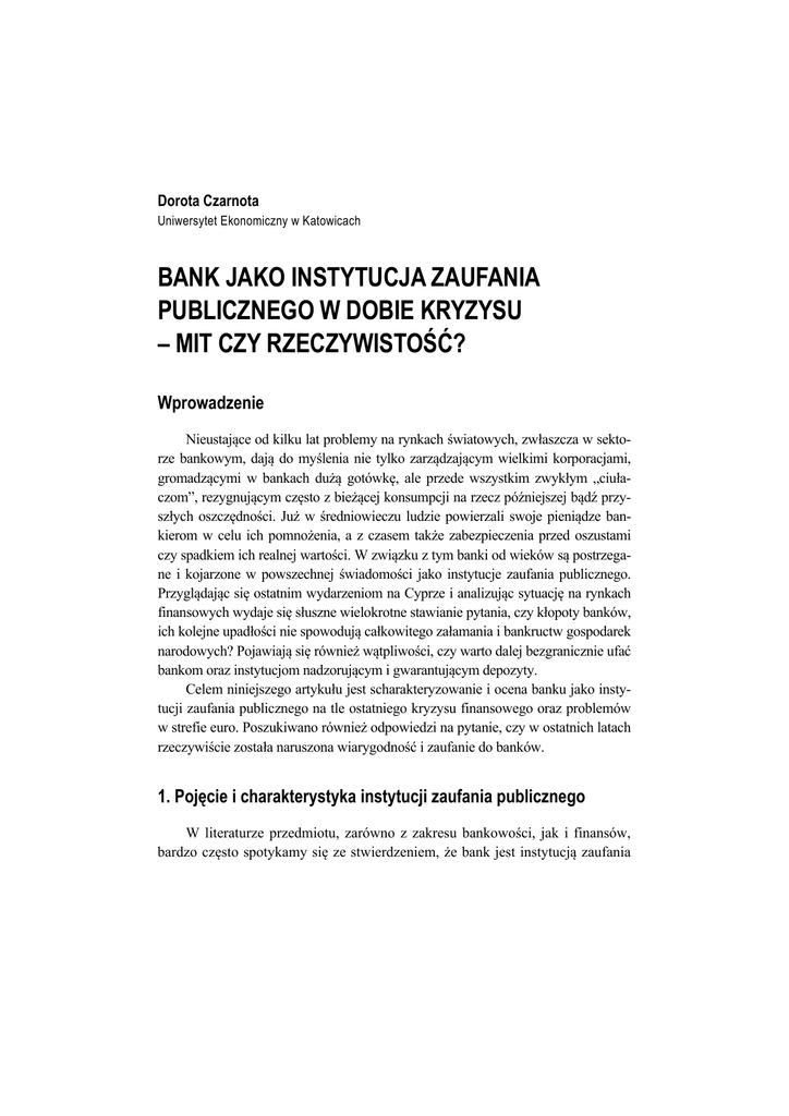 bank jako instytucja zaufania publicznego w dobie kryzysu