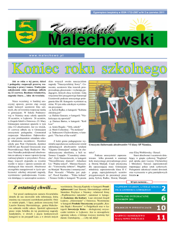 Egzemplarz bezpłatny ■ ISSN 1732-2987 ■ Nr 2 ■ czerwiec 2011 www.malechowo.pl Koniec roku szkolnego Jak co roku o tej porze, dzieci i pedagodzy rozpoczęli przerwę wakacyjną w pracy i nauce. Tradycyjne zakończenie roku szkolnego odbyło się 22 czerwca. Rozdano świadectwa, nagrody i hura…. laba do września. Nieco wcześniej, w bardziej uroczystej oprawie, pewien etap swojej nauki kończyli uczniowie klas szóstych, aby od września rozpocząć naukę w gimnazjum. W Szkole Podstawowej w Niemicy mury szkoły opuściło 18 uczniów, w Lejkowie 26 uczniów, w Zespole Szkół w Ostrowcu -23. Mury Gimnazjum natomiast opuściło w tym roku 112 absolwentów. Już we wtorek, 21 czerwca odbyła się w Gimnazjum uroczystość pożegnalna. Ceremoniał rozpoczęto Mazurkiem Dąbrowskiego oraz przekazaniem sztandaru szkoły młodszemu rocznikowi.. Dyrektor szkoły pan Piotr Chylarecki, dyrektor GZEAS pan Ryszard Grzeszczuk oraz Przewodniczący Rady Rodziców- Mariusz Nieradka podziękowali absolwentom za sukcesy w nauce i sporcie życząc realizacji planów w przyszłości. Prowadzący wręczyli stypendia za wysokie wyniki w nauce i sporcie uczniom odchodzących klas trzecich. Absolwenci szczególnie zaangażowani w życie społeczności szkolnej otrzymali nagrody, wyróżnienia i podziękowania. Uczniowie działający w samorządzie uczniow- skim wręczyli swoim nauczycielom nagrody "Nauczycielskiej Sowy”. Corocznie, uczniowie klas trzecich przeprowadzają głosowanie i wyłaniają pedagogów, których chcą wyróżnić. Galę wręczenia Sów przygotowuje Samorząd Uczniowski podczas uroczystego pożegnania klas III. Kategorie wyróżnień są różne. W tym roku szkolnym wyróżnienia przyznano: - p. Sylwii Radko, w kategorii: "Kobieta zmienną jest" - p. Halinie Gancarz, w kategorii: "Niekończąca się opowieść" - p. Dariusz Bartos, w kategorii: "Król Lew" - p. Annie Rogala - "Orły, sokoły" - p. Marii Cichockiej - "Na melanżu" - p. Tadeuszowi Chylewskiemu, w kategorii: "The best of the world". Z kolei grono pedagogiczne wyróżniło najciekawsze osobowości wśród odchodzących absolwentów tytułami "Giganta Gimnazjum" nadając im charakterystyczne określenia, a byli to: Tomasz Czupajło -"Czarodziej uśmiechu", Eryk Niezawitowski, w kategorii "Nieoszlifowany diament", Arkadiusz Lis- "Piękny umysł”, Mateusz Kaszyński - "Uniwersalny żołnierz", Magdalena Manijak "Rozważna i romantyczna", Piotr Nowacki -"Władza jest piękna", Paweł Karaban - "Pełna kultura" i Tomasz Gołda w kategorii "Po prostu Uroczyste ślubowanie absolwentów VI klasy SP Niemica. tańcz". Podczas uroczystości zaprezentowano kilka piosenek w aranżacji koła muzycznego prowadzonego przez p. Dorotę Manijak. Część artystyczną dla opuszczającej mury Gimnazjum młodzieży zaprezentowała klasa II C z grupą zaprzyjaźnionych uczniów przygotowanych do prezentacji przez panią Sylwię Radko, Dorotę Manijak oraz Elizę Wróblewską - Hencel. Starsi absolwenci i uczniowie działający w grupie cyrkowej "Kuglarze" pod opieką pani Lucyny Chylareckiej i Mirosławy Turczyn zaprezentowali imponujący pokaz sztuk cyrkowych. Pożegnanie zakończył ostatni dzwonek oraz wyrzucenie w górę pamiątkowych biretów.■ W tym numerze... Z ostatniej chwili…. Tuż przed zamknięciem numeru Kwartalnika dotarła do nas niezwykle miła informacja, którą musimy się z naszymi czytelnikami podzielić. Otóż w ostatni piątek, 1 lipca, podczas uroczystej Gali Laurów Starosty Sławieńskiego, gmina Malechowo odniosła wielki sukces. Spośród zgłoszonych przez wójta Szlufika do tej prestiżowej nagrody kandydatów, w dwóch z pięciu konkursowych kategorii to im przypadł Laur, a w dwóch innych wyróżnienia. Decyzją Kapituły w kategorii Przedsiębiorczość Laur Starosty Sławieńskiego odebrał Stanisław Przybysz z Niemicy -właściciel firmy „Wędliniarstwo naturalne”, natomiast w kategorii Zasłużony dla Kultury Laur otrzymał Zespół Ludowy „Ostrowianie” z Ostrowca. Wyróżnienie w kategorii Produkt Turystyczny przypadło „Krainie Bajek i Rowerów” w Podgórkach oraz w kategorii Inwestycja Roku – ekologicznej oczyszczalni ścieków w Lejkowie. Jest to niewątpliwie ogromny sukces, z którego wszyscy możemy być dumni. Gratulujemy, ….i oby tak dalej! NAJPIERW STADION, A TERAZ SZKOŁA IM. KAZIMIERZA GÓRSKIEGO 2 SPOTKANIE INTEGRACYJNE SENIORÓW 2011 6 PÓŁROCZE W INWESTYCJACH 10 KARWCE I KOSIERZEWO MAJĄ NOWE ŚWIETLICE 11 |2| WYDARZENIA Nr 2 czerwiec 2011 Najpierw stadion, a teraz szkoła im. Kazimierza Górskiego Kazimierz Klaudiusz Górski (ur. 2 mar- ca 1921 we Lwowie, zm. 23 maja 2006 w Warszawie) – polski piłkarz, występujący na pozycji napastnika, trener piłkarski oraz działacz. W latach 1970-1976 był selekcjonerem reprezentacji Polski, którą doprowadził do zwycięstwa w Igrzyskach Olimpijskich 1972 oraz finału Igrzysk Olimpijskich 1976, a także srebrnego medalu na Mundialu 1974. Po zakończeniu pracy z drużyną narodową prowadził – z sukcesami – kluby w Grecji, m.in. Panathinaikos AO i Olympiakos SFP; z oboma wywalczył mistrzostwo kraju. Od 1986 roku zasiadał we władzach PZPN. W latach 1991-1995 był prezesem związku. W plebiscycie Piłki Nożnej został uznany za najlepszego polskiego trenera XX wieku. Już przy bramie uczniowie witali przybyłych gości. W 1993 bez powodzenia kandydował do sejmu z listy Partii Przymierze „Samoobrona RP” Grał w piłkę nożną jako napastnik w zespołach: RKS Lwów, Spartak Lwów, Dynamo Lwów, Legia Warszawa. Nosił pseudonim boiskowy „Sarenka”. Świetnie zapowiadającą się karierę piłkarską przerwały mu lata drugiej wojny światowej. Wystąpił w jednym meczu międzypaństwowym Polska-Dania (0-8) 26 czerwca 1948 (zagrał 34 minuty). Ukończył kurs trenerski w Wyższej Szkole Wychowania Fizycznego w Krakowie w 1952 roku oraz studia w Akademii Wychowania Fizycznego we Wrocławiu w 1980. Trenował 