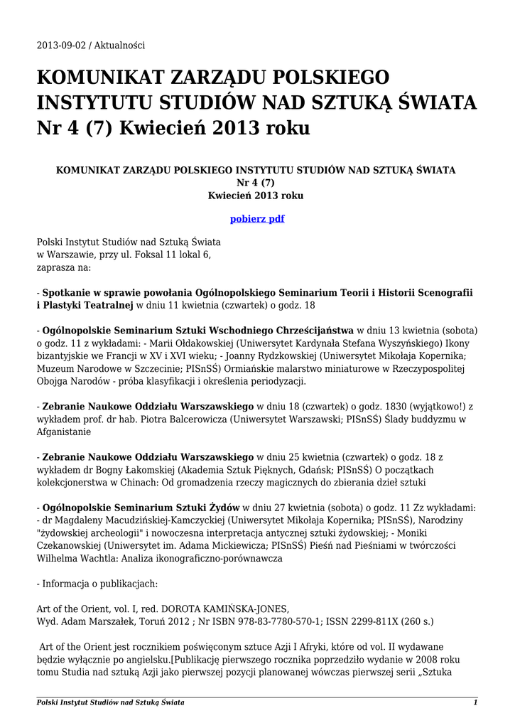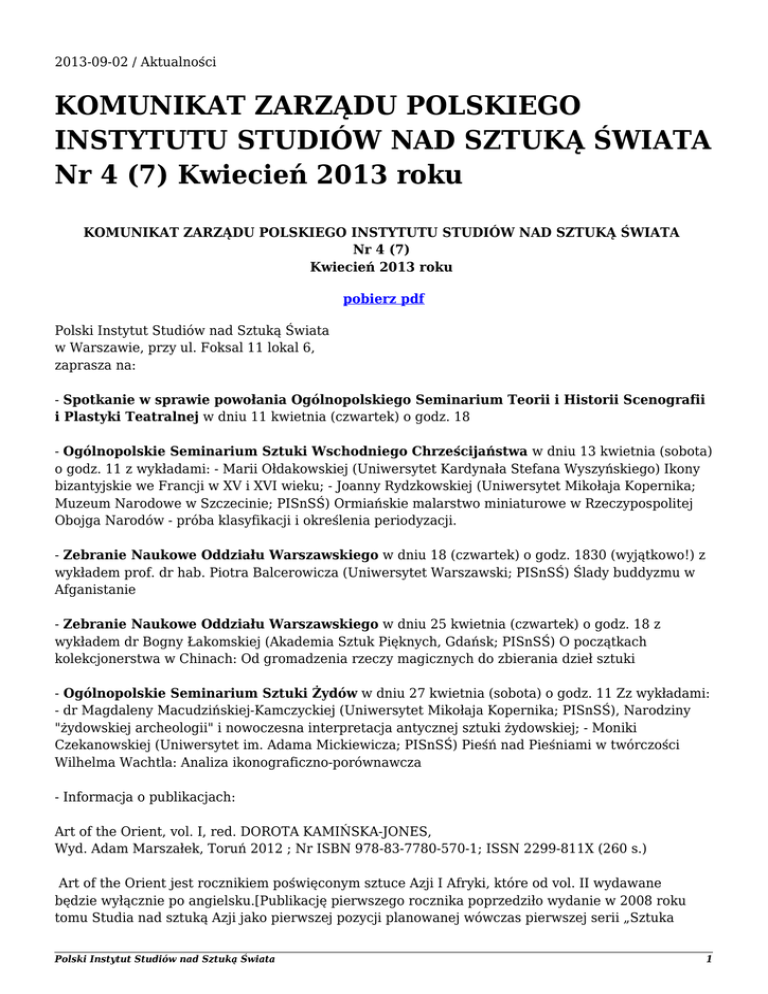 Kwiecień 2013 roku - polski instytut studiów nad sztuką świata