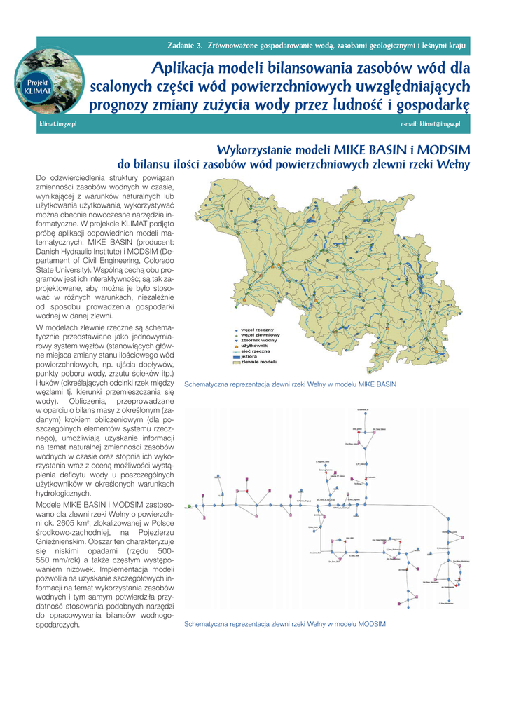 Wykorzystanie modeli MIKE BASIN i MODSIM do bilansu ilości