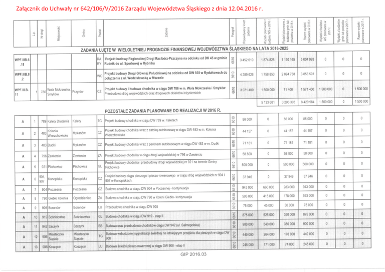 Załącznik do Uchwały nr 642/106/V/2016 Zarządu Województwa Śląskiego z dnia 12.04.2016 r.