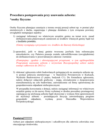 Procedura postępowania przy usuwaniu azbestu: *osoby fizyczne