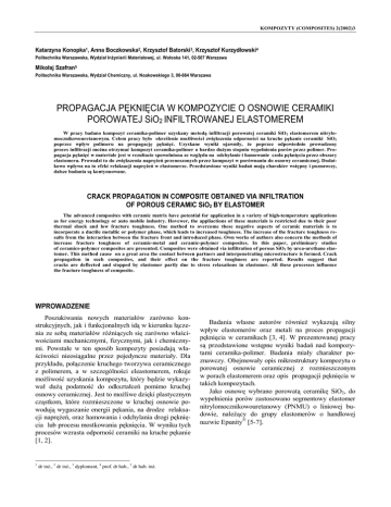 kompozyt ceramika-polimer z bardzo dobrym wypełnieniem porów. W uzyskanym w niniejszej pracy kompozycie zmiana odporności na pękanie zachodzi poprzez