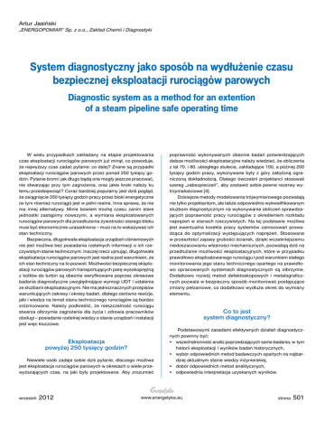 Artur Jasiński „ENERGOPOMIAR” Sp. z o.o., Zakład Chemii i Diagnostyki System diagnostyczny jako sposób na wydłużenie czasu bezpiecznej eksploatacji rurociągów parowych Diagnostic system as a method for an extention of a steam pipeline safe operating time W wielu przypadkach zakładany na etapie projektowania czas eksploatacji rurociągów parowych już minął, co powoduje, że najwyższy czas zadać pytanie: co dalej? Znane są przypadki eksploatacji rurociągów parowych przez ponad 250 tysięcy godzin. Pytanie brzmi: jak długo będą one mogły jeszcze pracować, nie stwarzając przy tym zagrożenia, oraz jakie kroki należy ku temu przedsięwziąć? Coraz bardziej popularny jest dziś pogląd, że osiągnięcie 350 tysięcy godzin pracy przez bloki energetyczne (w tym również rurociągi) jest w pełni realne. Inna sprawa, że nie ma innej alternatywy. Minie bowiem trochę czasu zanim stare jednostki zastąpimy nowszymi, a wymiana eksploatowanych rurociągów parowych dla przedłużenia żywotności starego bloku musi być ekonomicznie uzasadniona – musi na to wskazywać ich stan techniczny. Bezpieczna, długotrwała eksploatacja urządzeń ciśnieniowych nie jest możliwa bez posiadania rzetelnych informacji o ich rzeczywistym stanie technicznym. Inaczej rzecz ujmując, długotrwała eksploatacja rurociągów parowych jest realna pod warunkiem, że ich stan techniczny na to pozwoli. Możliwości bezpiecznej eksploatacji rurociągów parowych transportujących parę wysokoprężną z kotłów do turbin są obecnie weryfikowane poprzez okresowe badania diagnostyczne uwzględniające wymogi UDT i ustalenia ze służbami eksploatacyjnymi. Nie ma jednoznacznych przepisów warunkujących zakresy i okresy badań, dlatego zarówno rewizje, jaki i wiedza na temat stanu technicznego rurociągów są bardzo zróżnicowane. Należy podkreślić, że nieszczelność rurociągu stwarza olbrzymie zagrożenie dla życia i zdrowia pracowników obsługi – posiadanie rzetelnej wiedzy o stanie urządzeń i instalacji jest więc kluczowe. Eksploatacja powyżej 250 tysięcy godzin? Niewiele osób zadaje sobie dziś pytanie, dlaczego możliwa jest eksploatacja rurociągów parowych w okresach o wiele przewyższających czas, na jaki były projektowane. Aby zrozumieć wrzesień 2012 poprawność wykonywanych obecnie badań potwierdzających dalsze możliwości eksploatacyjne należy wiedzieć, że obliczenia z lat 70. i 80. ubiegłego stulecia, zakładające 100, a później 200 tysięcy godzin pracy, wykonywane były z góry założoną ograniczoną dokładnością. Dlatego ówcześni projektanci stosowali szereg „zabezpieczeń”, aby zostawić sobie pewne rezerwy wytrzymałościowe [4]. Dzisiejsze metody modelowania trójwymiarowego pozwalają nie tylko projektantom, ale także odpowiednio wykwalifikowanym służbom diagnostycznym na wykonywanie obliczeń sprawdzających poprawność pracy rurociągów z określeniem rozkładu naprężeń w stanach rzeczywistych. Na tej podstawie możliwa jest ewentualna korekta pracy systemów zamocowań prowadząca do optymalizacji występujących naprężeń. Stosowane w przeszłości zapasy grubości ścianek, dzięki wcześniejszemu niedoszacowaniu własności mechanicznych, pozwalają dziś na przedłużanie możliwości eksploatacyjnych, które w przypadku prawidłowo eksploatowanego rurociągu i pod warunkiem stałego monitorowania jego stanu technicznego opartego na prawidłowo opracowanych systemach diagnostycznych są olbrzymie. Dodatkowo rozwój metod defektoskopowych i metalograficznych pozwala w bezpieczny sposób monitorować postępujące zmiany pełzaniowe, co dodatkowo wydłuża okres do wymiany elementu. Co to jest system diagnostyczny? Podstawowymi zasadami efektywnych działań diagnostycznych powinny być: • wszechstronność analiz poprzedzających same badania, w tym historii eksploatacji i wyników badań historycznych, • wybór odpowiednich metod badawczych opartych na najbardziej aktualnym stanie wiedzy inżynierskiej, • dobór odpowiednich metod analitycznych, • odpowiednia interpretacja uzyskanych wyników. www.energetyka.eu strona 501 Do właściwej oceny stanu elementu konieczna jest znajomość procesów wpływających na obniżenie trwałości w trakcie jego eksploatacji, znajomość mechanizmów niszczenia oraz świadomość zróżnicowanej intensywności ich zachodzenia w różnych warunkach pracy. Bezcenne są zatem odpowiednio planowane badania, profilaktyka i monitorowanie stanu technicznego realizowane na podstawie najbardziej aktualnej wiedzy inżynierskiej. Do diagnostyki i oceny stanu technicznego rurociągów parowych należy zatem przystępować według uporządkowanego systemu, w którym rodzaj i zakres badań są logiczną konsekwencją przeprowadzonej analizy. Celami nadrzędnymi dla systemu diagnostycznego są ocena rzeczywistego stanu technicznego i określenie perspektywy dalszej bezpiecznej eksploatacji (rys. 1), w tym nakreślenie kierunku ewentualnych modernizacji w celu wydłużenia trwałości urządzenia. Badania diagnostyczne powinny być ściśle powiązane z prognozowaniem, więc wymagają wyboru metod badawczych, które poza określeniem stanu rzeczywistego w danym momencie dają również możliwość przewidywania zachowania się materiału elementów w stosunkowo długim okresie dalszej eksploatacji w zadanych warunkach roboczych przy jednoczesnej analizie wyników badań historycznych. Historia eksploatacji W przypadku eksploatowanego rurociągu parowego sukcesywna ocena stanu technicznego powinna być związana z analizą historii eksploatacji. Zestawienie koniecznych informacji, które powinny być w tym celu dostępne, pokazano na rysunku 2. Są to w większości standardowe dane, które z uwagi na nadzór UDT powinny być dostępne, a które należy rozszerzyć o wyniki rzeczywistych własności materiałowych określonych podczas niszczących laboratoryjnych badań w momencie