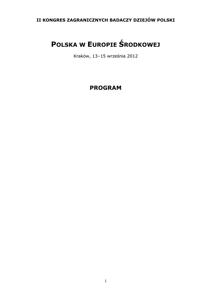 II KONGRES ZAGRANICZNYCH BADACZY DZIEJÓW POLSKI POLSKA W EUROPIE ŚRODKOWEJ Kraków, 13–15 września 2012 PROGRAM 1 OBRADY 12 września 2012 godz. 15:00-18:00 Panel dyskusyjny Społeczność żydowska w Polsce po Holokauście Miejsce obrad: Auditorium Maximum Uniwersytetu Jagiellońskiego Sala: Średnia A Moderatorka: Edyta Gawron Sesja poświęcona historii Żydów polskich po Holokauście obejmie pierwsze dziesięciolecia po zakończeniu II wojny światowej. Za datę zamykającą okres bezpośrednich następstw Zagłady i prób odbudowy oraz utrzymania różnych form życia żydowskiego w powojennej Polsce przyjęto rok 1969, czyli czas emigracji „po-marcowej”. Celem sesji jest podsumowanie badań w tym zakresie, prowadzonych zarówno w Polsce jak i za granicą, oraz ich konfrontacja z szerszym tłem powojennej historii Żydów w krajach Europy ŚrodkowoWschodniej. Punktem wyjścia do dyskusji będzie prezentacja efektów projektu „Następstwa Zagłady Żydów. Polska 1944-2010” i indywidualne badania, a także doświadczenia uczestników sesji. Zwieńczeniem dyskusji będą refleksje historyka i zarazem świadka oraz uczestnika wydarzeń omawianego okresu. Uczestnicy: Prezentacja wyników projektu „Następstwa Zagłady Żydów. Polska 19442010” (publikacja Wydawnictwa UMCS w Lublinie, 2010) Anna Cichopek-Gajraj (Phoenix) Jan T. Gross (Nowy Jork) Anat Plotzker (Haifa) Shimon Redlich (Beer Szewa) Jean-Charles Szurek (Nanterre) Klub: Średniowiecze Panteon świętych patronów: Polska i jej sąsiedzi w średniowieczu Miejsce obrad: Auditorium Maximum Uniwersytetu Jagiellońskiego Sala: Mała A Moderatorzy: Zdzisław Noga, Krzysztof Ożóg Sesja będzie poświęcona czterem świętym patronom Polski: Wojciechowi, 2 Wacławowi, Stanisławowi i Jadwidze Śląskiej, których otaczano kultem w Europie Środkowej. Zostaną zaprezentowane referaty badaczy z Budapesztu, Marburga i Pragi na temat genezy i rozwoju kultu wspomnianych świętych, form jego popularyzacji oraz różnorodnych treści religijnych, ideowych, politycznych i symbolicznych z nim związanych. Dyskusja towarzysząca referatom, do której zostaną zaproszeni także mediewiści krakowscy, będzie dotyczyć rozmaitych aspektów kultu świętych patronów, a przede wszystkim jego roli integrującej społeczeństwa środkowoeuropejskie oraz kulturotwórczej w dziedzinie historiografii, hagiografii, kaznodziejstwa, literatury, sztuki i liturgii. Umożliwi ona interdyscyplinarne spojrzenie na kult świętych patronów Polski w kraju i poza jego granicami oraz będzie znakomitą okazją do wymiany doświadczeń badawczych w gronie historyków środkowoeuropejskich. Uczestnicy: Stanislava Kuzmová (Budapeszt), Średniowieczny kult św. Stanisława w Polsce i Europie Środkowej Petr Kubín (Praga), Středověký kult sv. Vojtěcha v Polsku, Čechách a v sousedních zemích Winfried Irgang (Marburg), Sancta Adwigis … mulier fortis … e stripe generosa – Aspekte der Hedwigsverehrung im Mittelalter Do dyskusji nad referatami zostaną zaproszeni następujący mediewiści ze środowiska krakowskiego: Waldemar Bukowski, Wojciech Drelicharz, Lidia Korczak, Marek D. Kowalski, Andrzej Marzec, Wojciech Mischke, Zenon Piech, Krzysztof Polek, Piotr Rabiej, Jerzy Rajman, Stanisław A. Sroka, Krzysztof Stopka, Marcin Starzyński, Wiktor Szymborski, Marek Walczak, Anna Waśko, Dagmara Wójcik-Zega, Anna Zajchowska, Maciej Zdanek. Klub: Nowożytność Wielokulturowość Rzeczypospolitej XVI-XVIII w. – państwo i ludzie Miejsce obrad: Auditorium Maximum Uniwersytetu Jagiellońskiego Sala: Mała B Moderatorzy: Jakub Basista, Bożena Popiołek, Jarosław Stolicki W ramach panelu nowożytnego zostanie podjęta dyskusja nad kwestią wielokulturowości Rzeczypospolitej, przy czym przyjęte rozumienie kultury będzie obejmowało zarówno tradycje, obyczaje, twórczość artystyczną, wzorce osobowe, jak i kulturowy wymiar życia politycznego (tradycje sejmikowe, kształtowanie się demokracji, tolerancję wyznaniową). Szczególna uwaga zostanie poświęcona ocenie tych elementów kultury, które złożyły się na dorobek cywilizacyjny Rzeczypospolitej tego okresu, zbudowany w oparciu o wartości takie jak demokracja, tolerancja czy synkretyzm kulturowy, lecz 3 mający także swą ciemną stronę (ksenofobia, izolacja kulturowa, negatywne wzorce ustrojowe). W ramach tego problemu zostaną przedyskutowane następujące zagadnienia: - Kultura polityczna i prawna Rzeczypospolitej XVI-XVIII w. – wzór czy antywzór ustrojowy? - Tradycje sejmikowe dawnej Rzeczypospolitej – ideał demokracji czy bezdroża państwowości? - Wielość narodów i wyznań – tolerancja czy przymus? - Kultura polska, kultura szlachecka – izolacja czy synkretyzm kulturowy? - Wzorce i modele osobowe – u podstaw wspólnej mentalności. - Inny, obcy, wróg - postrzeganie obcości i swojskości w wielokulturowym państwie. Uczestnicy: Jurate Kiaupiene (Wilno) Vitaliy Mykhaylovskiy (Kijów) Andrej Radaman (Mińsk) Hans-Jürgen Bömelburg (Gießen) Cristian Bobicescu (Bukareszt) Klub: Wiek XIX Oblicza dziewiętnastowiecznej modernizacji: Polska i jej sąsiedzi. Studium przypadków Miejsce obrad: Auditorium Maximum Uniwersytetu Jagiellońskiego Sala: Seminaryjna Moderatorzy: Tomasz Gąsowski, Kazimierz Karolczak Dziewiętnaste stulecie wzbudziło w części elit krajów Europy ŚrodkowoWschodniej poczucie narastającego zapóźnienia cywilizacyjnego. Uprzemysłowiony i zurbanizowany zachód kontynentu zdawał się coraz bardziej oddalać od rolniczego i wiejskiego wschodu. Sytuacja ta mogła prowadzić do trwałej degradacji tego obszaru do pozycji słabego rynku zbytu, źródła taniej siły roboczej oraz zasobów mobilizacyjnych na wypadek wojny dla silniejszych sąsiadów. Zaczęły się pojawiać pomysły zmierzające do przełamania tej sytuacji, a wraz z nimi wywiązała się debata dotycząca kierunku zmian. Niektóre pomysły wdrażano w życie. Działo